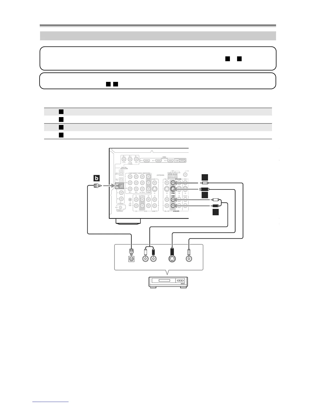 le branchement. La source vidéo à enregistrer doit être branchée à l’ampli-tuner AV avec le même type de branchement.