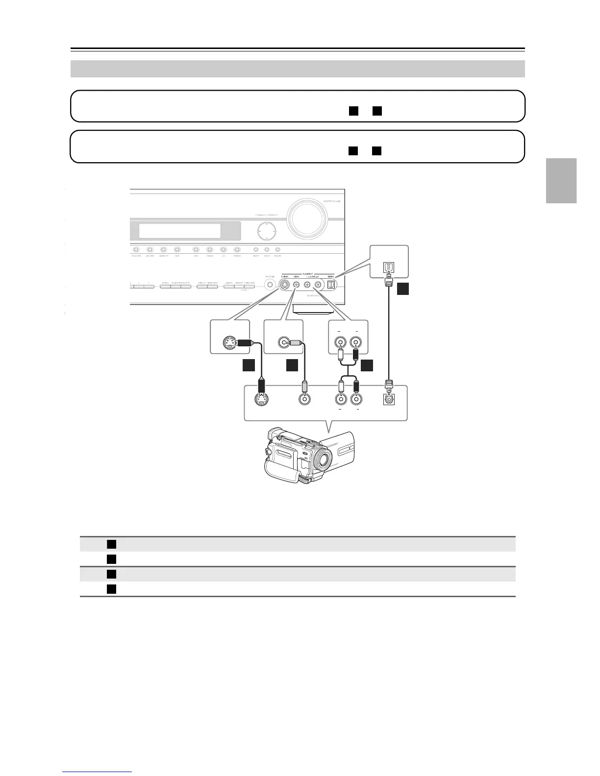 Sélectionnez un branchement vidéo correspondant à votre caméscope ( ou ), puis effectuez le branchement.