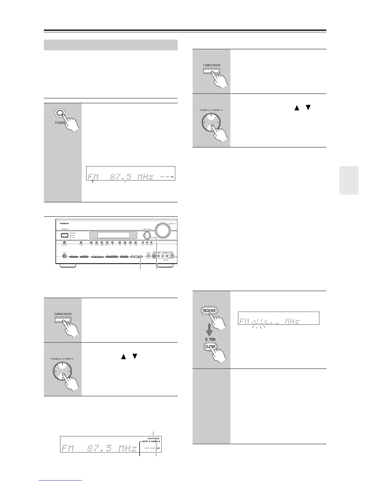 par pas de 0,2 MHz sur la bande FM et de 10 kHz sur la