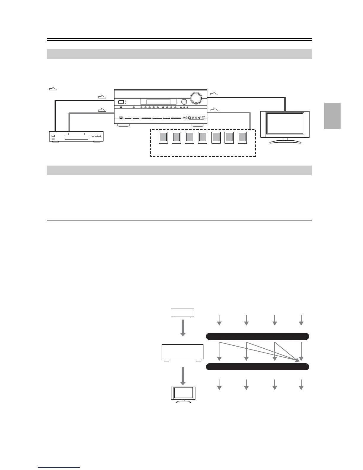 The AV receiver/AV amplifier supports several connection formats for compatibility with a wide range of AV equip-