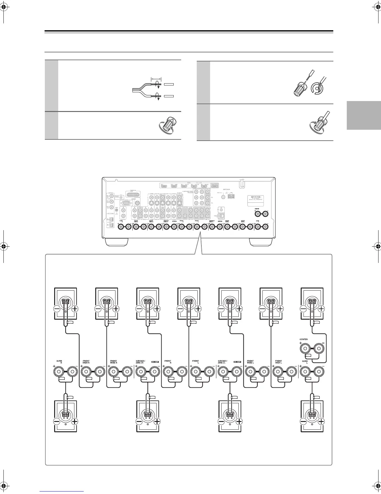 The following illustration shows which speaker should be connected to each pair of terminals. If you’re using only one
