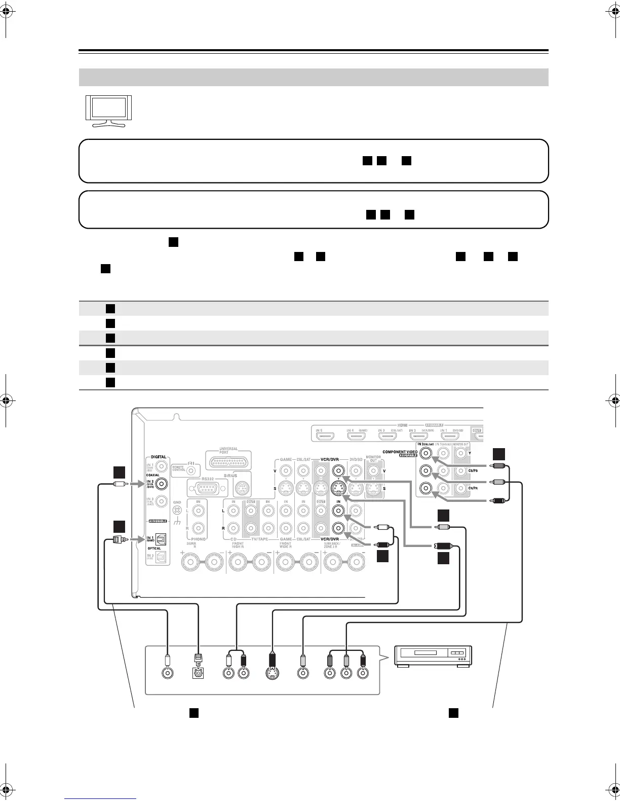 Connection AV receiver Signal flow VCR or DVD recorder
