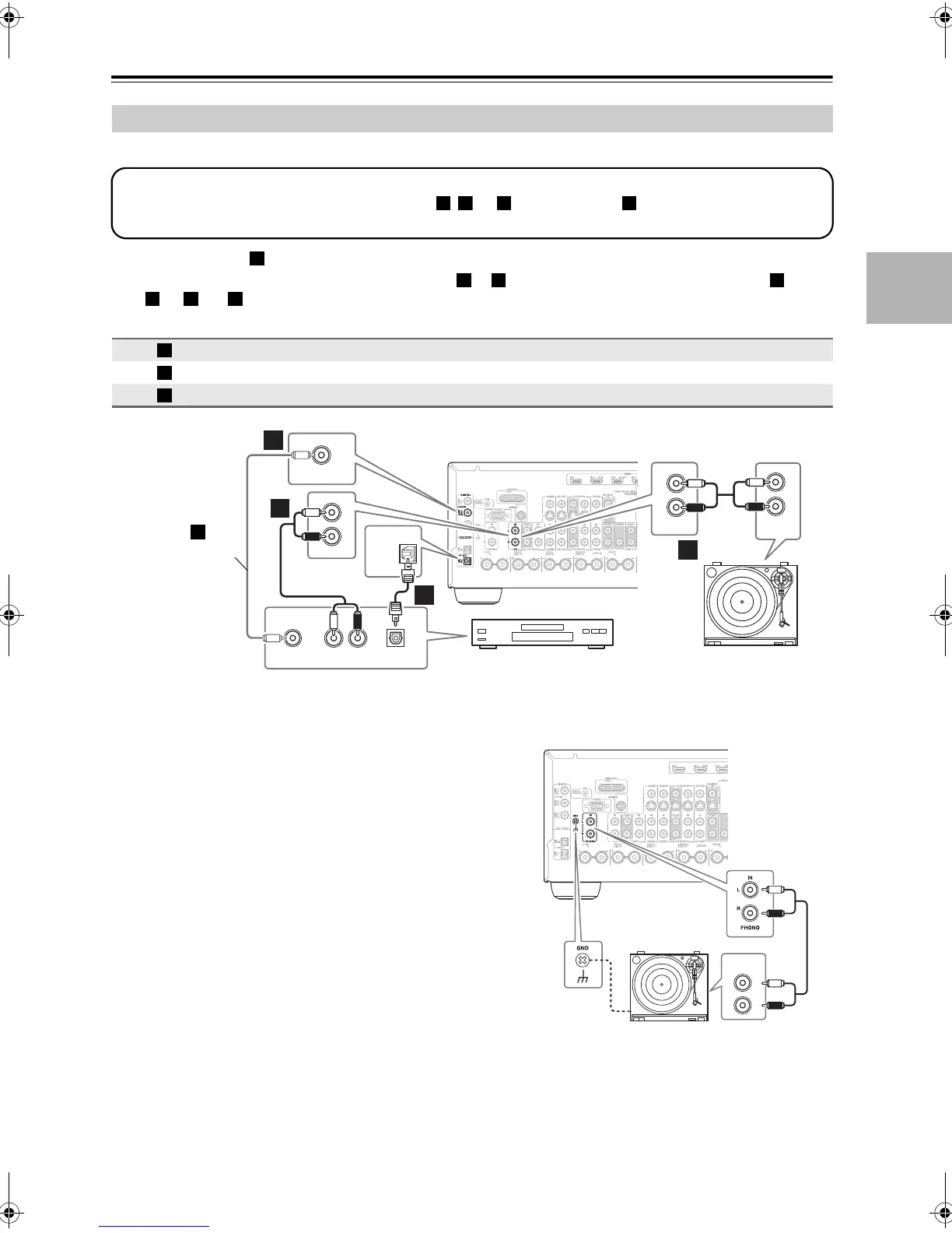 Choose a connection that matches your CD player ( , , or ). Use connection for a turntable with a built-in