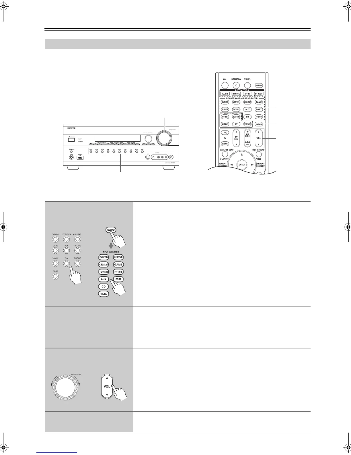 This section explains how to select the input source (i.e., the AV component that you want to listen to or watch).