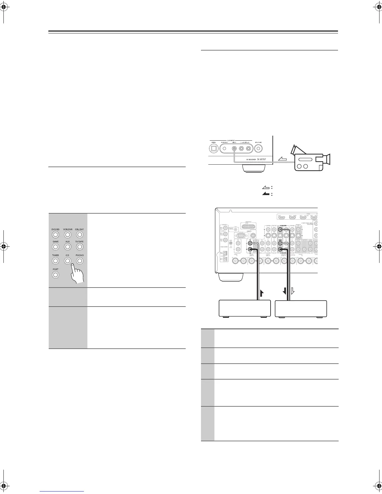nected to the CD IN, and video from the camcorder con-