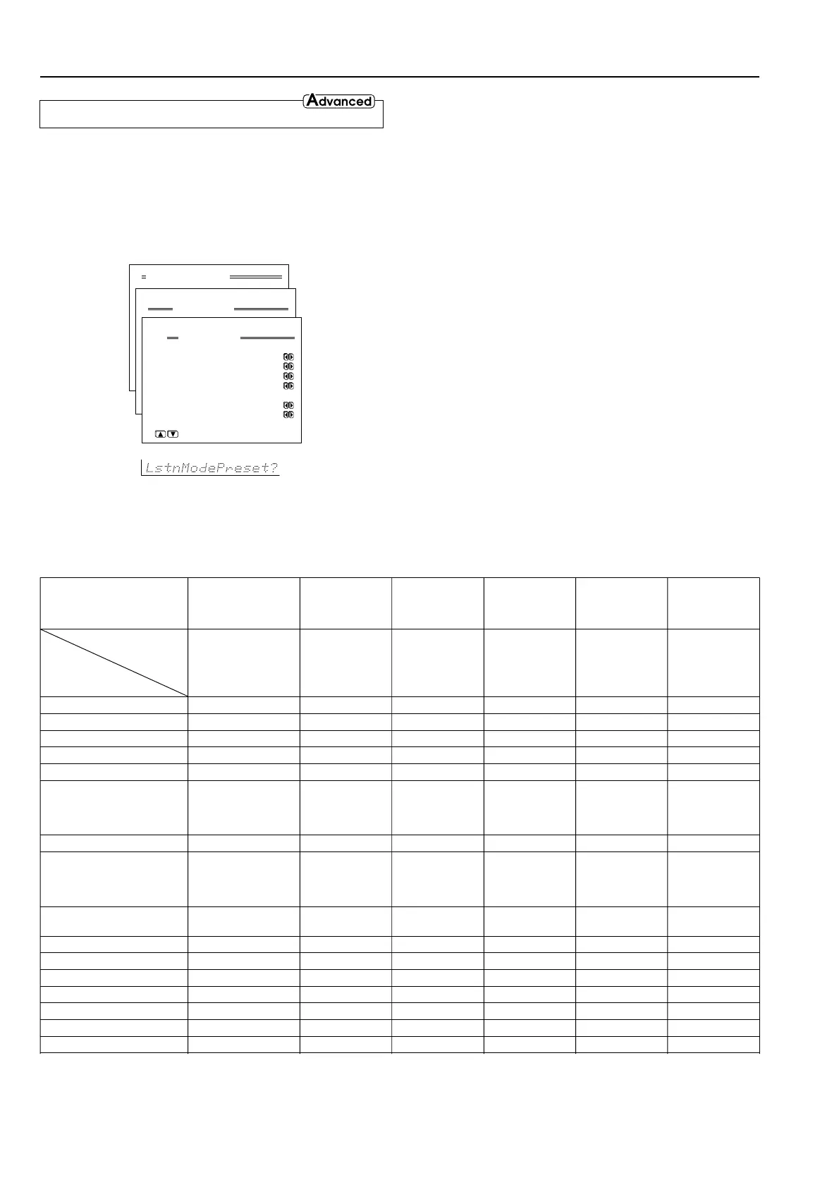 Listening modes marked with the “●” can be selected. For columns that list a number of listening modes, the display will correspond to the