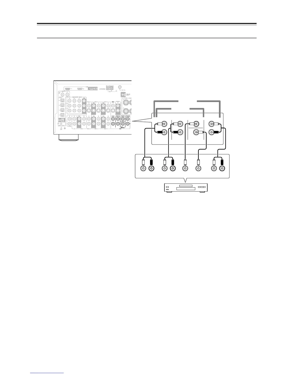 Use a multichannel analog audio cable, or several normal audio cables, to connect the AV receiver’s DVD IN FRONT