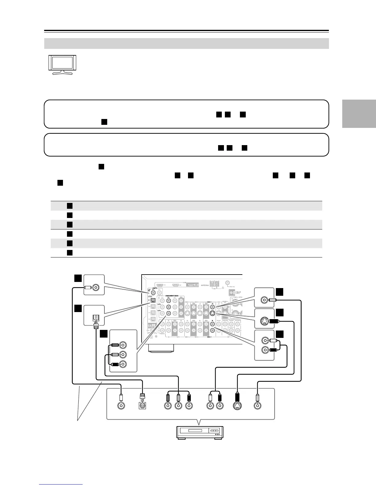 •To enjoy Dolby Digital and DTS, use connection or . (To listen in Zone 2 as well, use and , or and