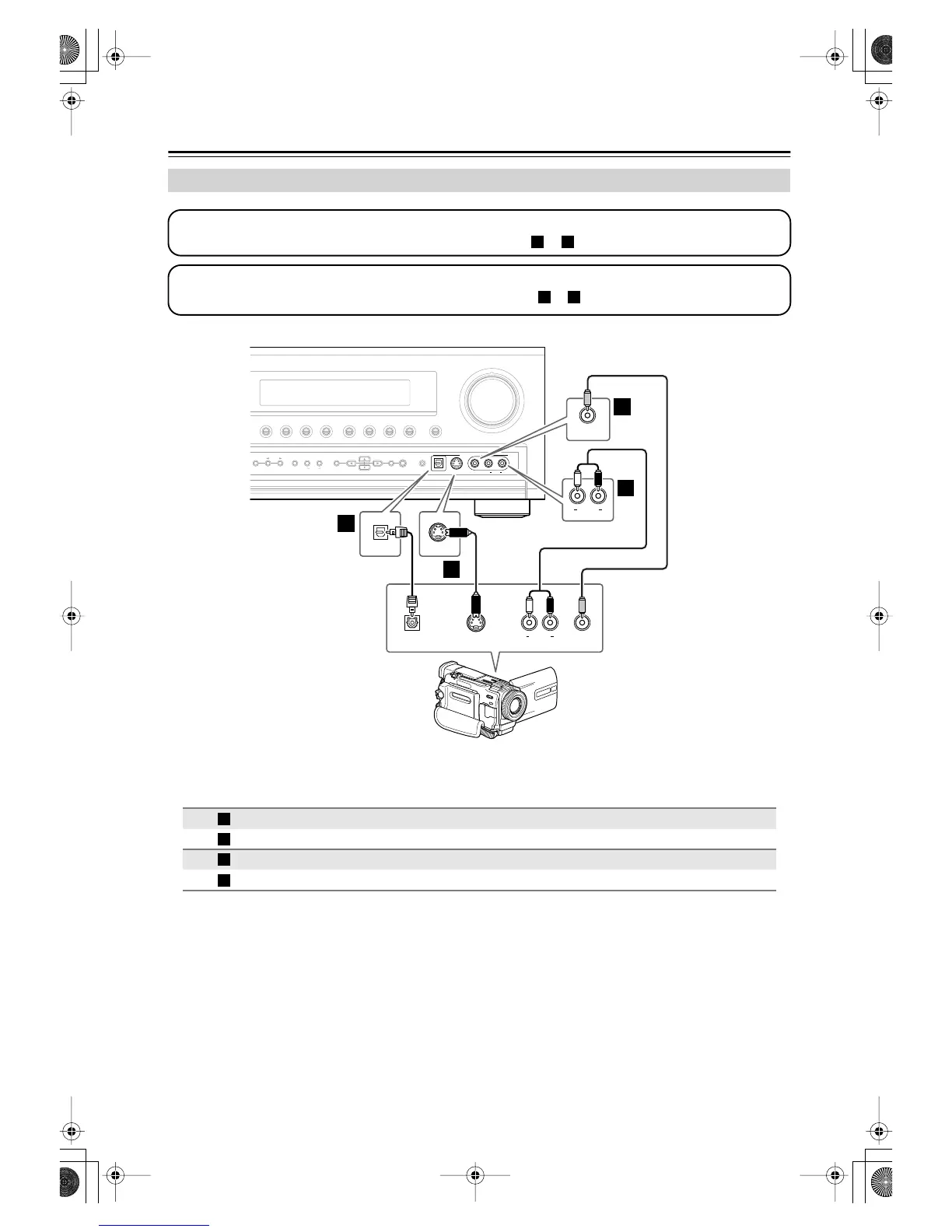 Connection AV receiver Signal flow Camcorder or console