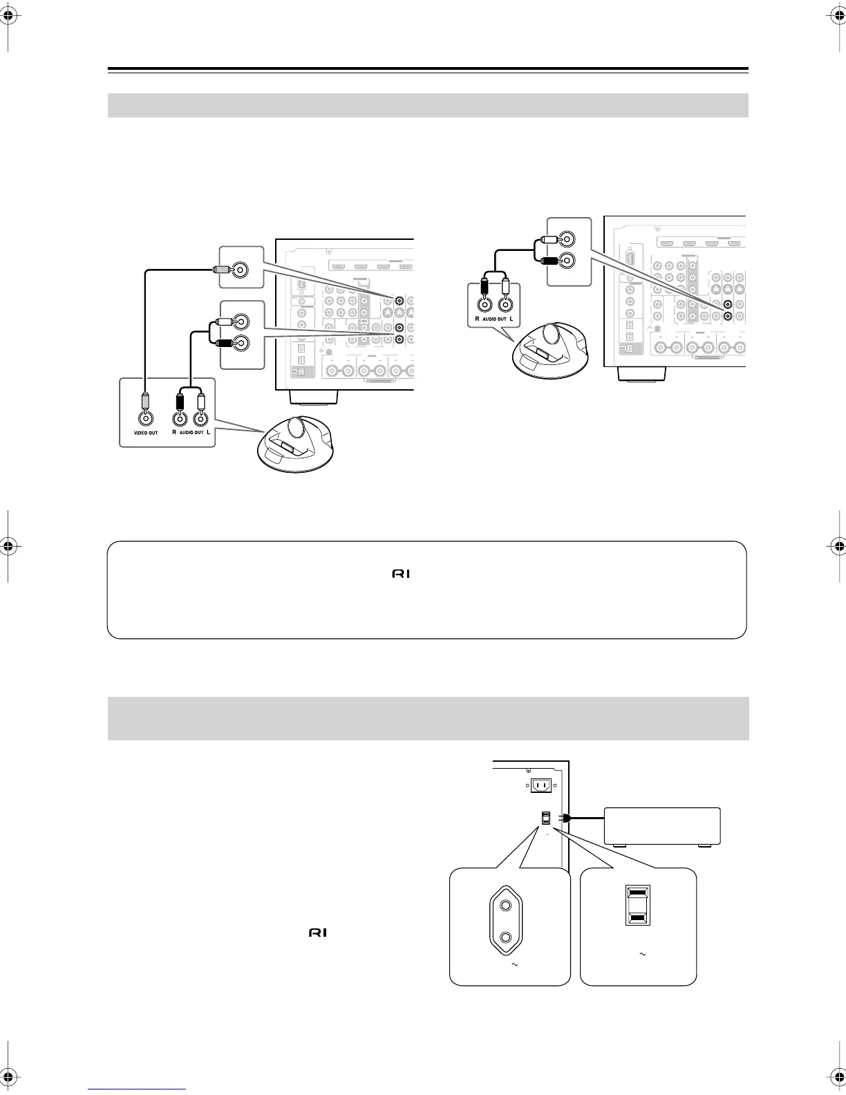 • Connect the RI Dock to the AV receiver with an cable (see page 43).