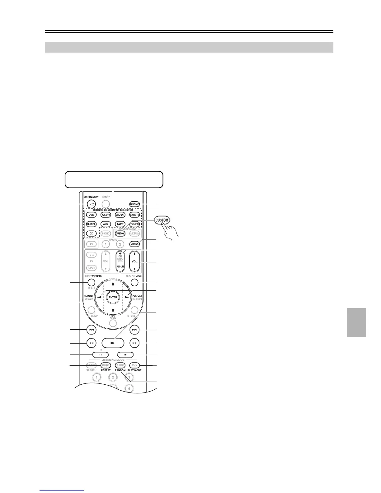 Le bouton [CUSTOM] est préprogrammé avec la télé-