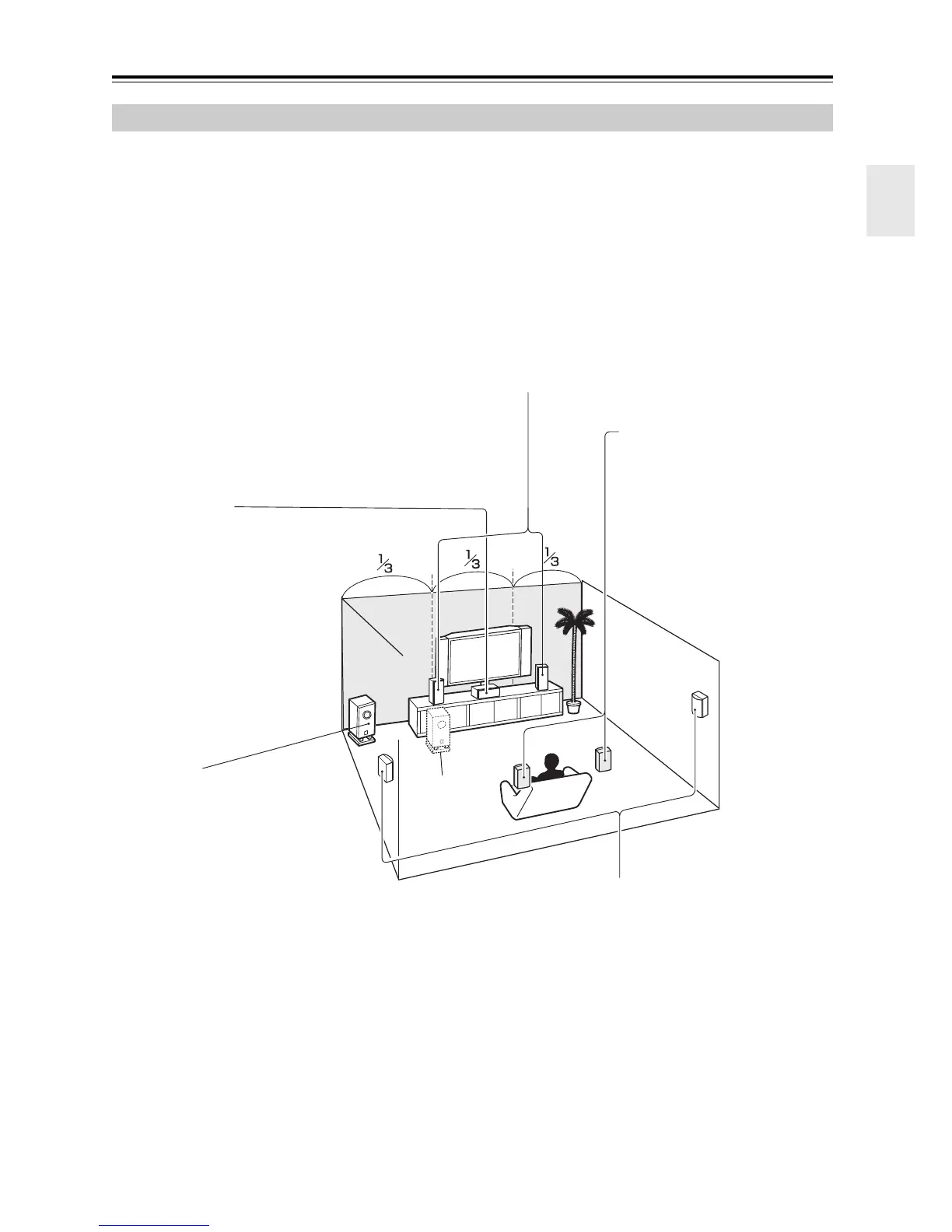 el subwoofer en una esquina frontal, o a