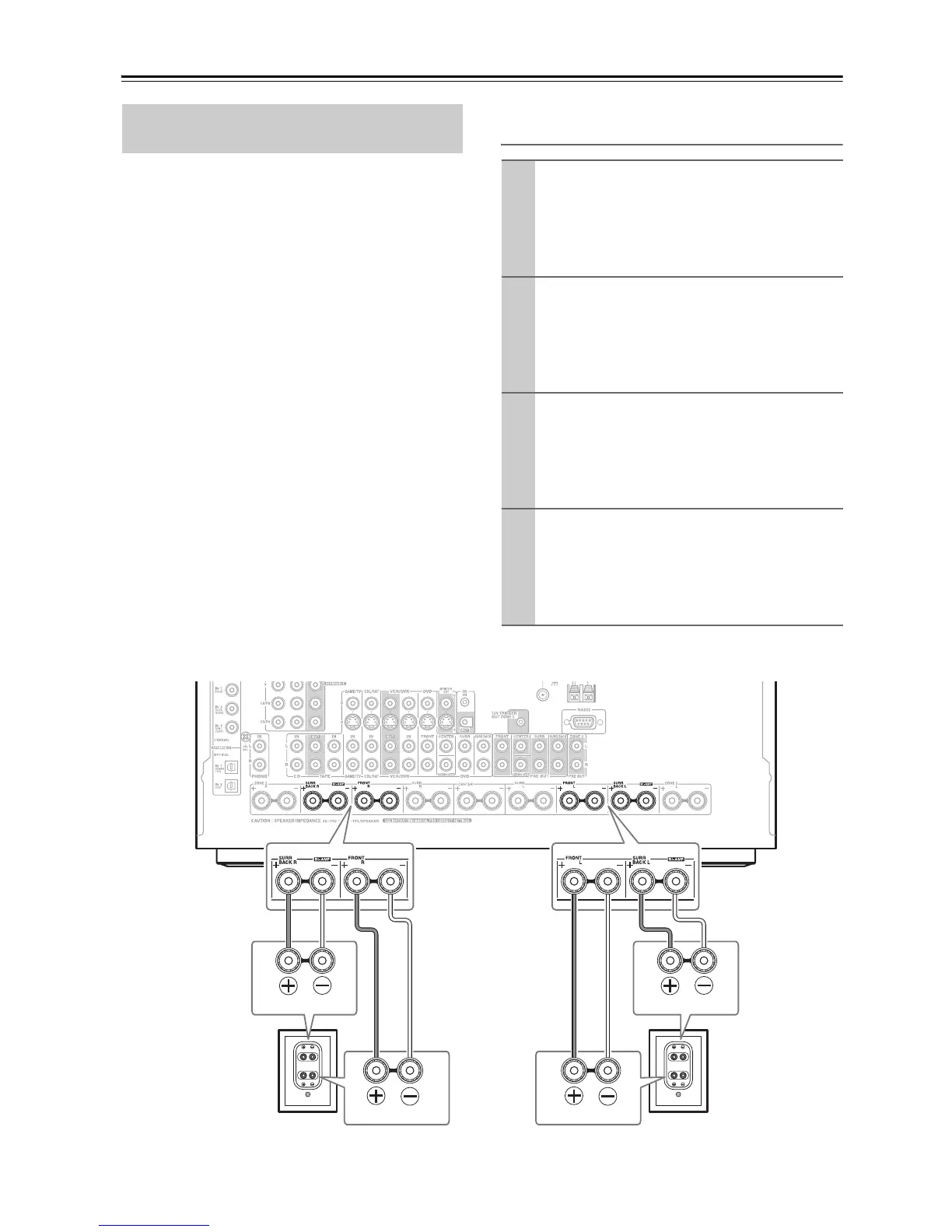 • Cuando se usa la biamplificación, el Receptor de AV es