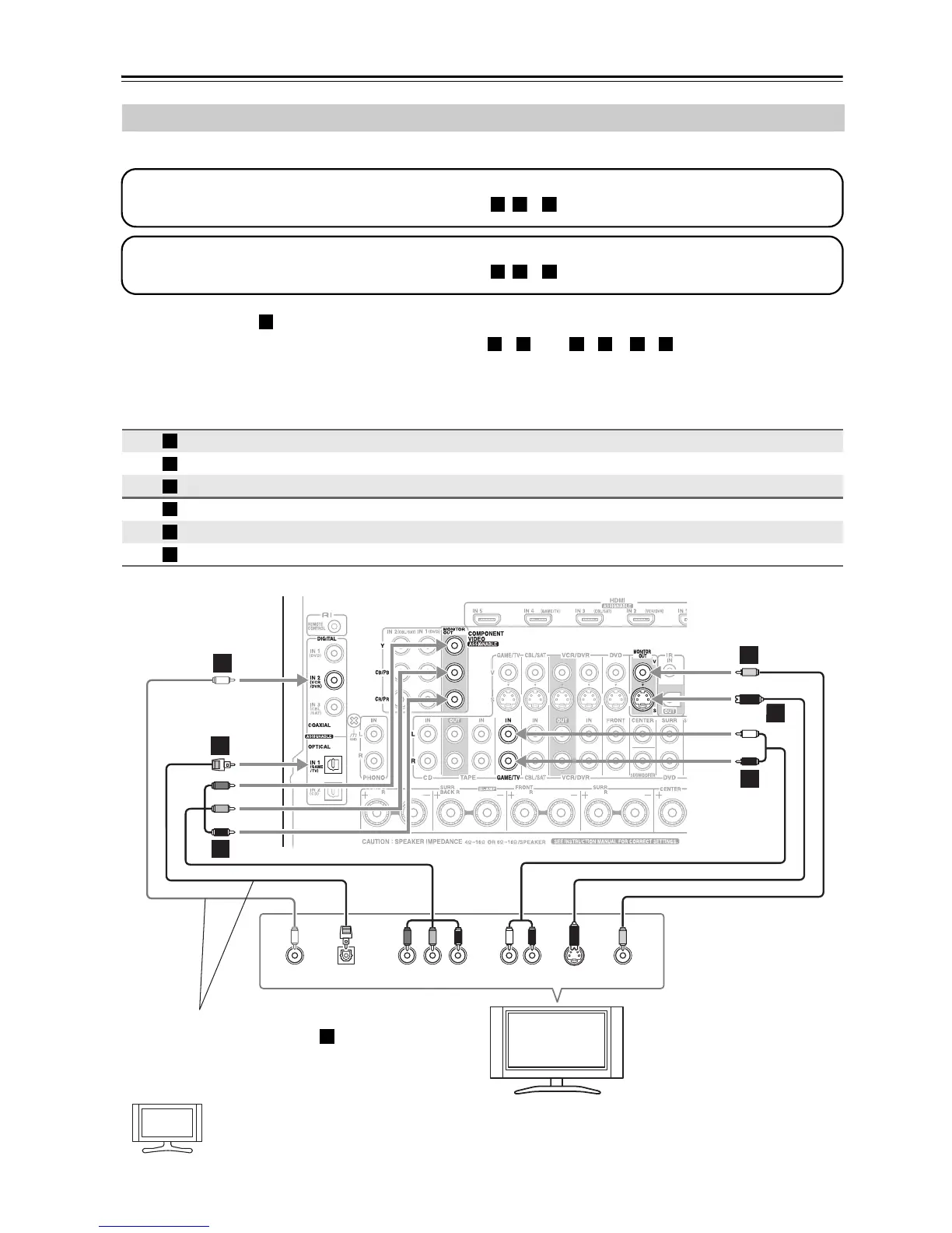 • Con la conexión , puede escuchar y grabar sonido en su televisor y escucharlo en la Zona 2.