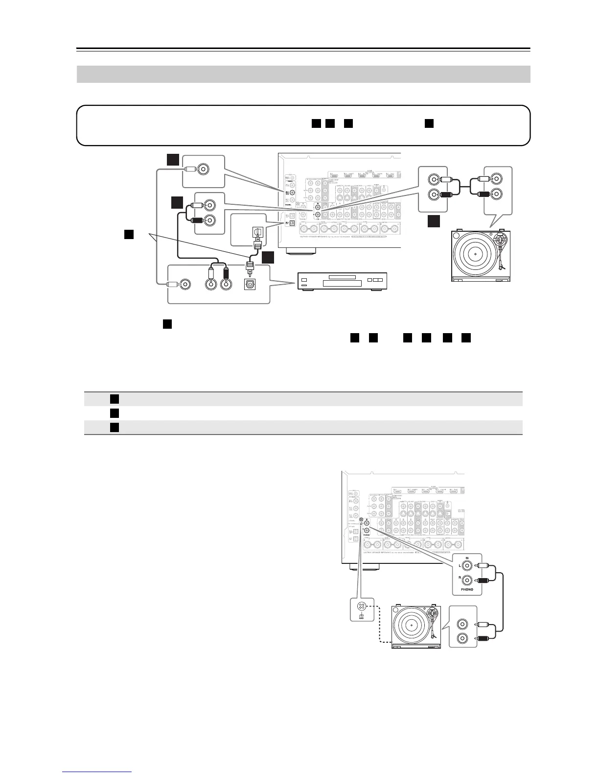 Elija una conexión que coincida con su reproductor de CD ( , o ). Use la conexión para un giradiscos con