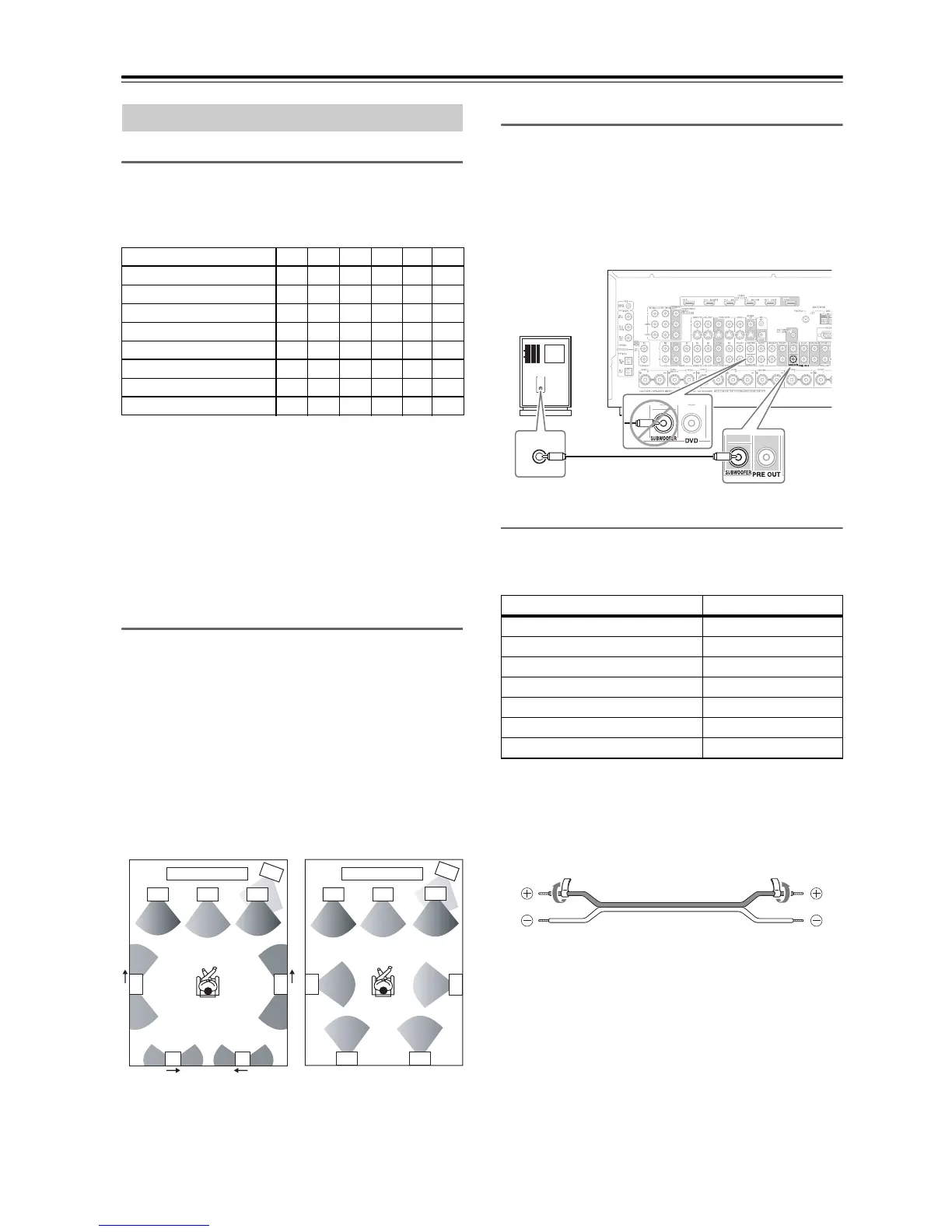 Les bornes d’enceinte positives (+) de l’ampli-tuner AV