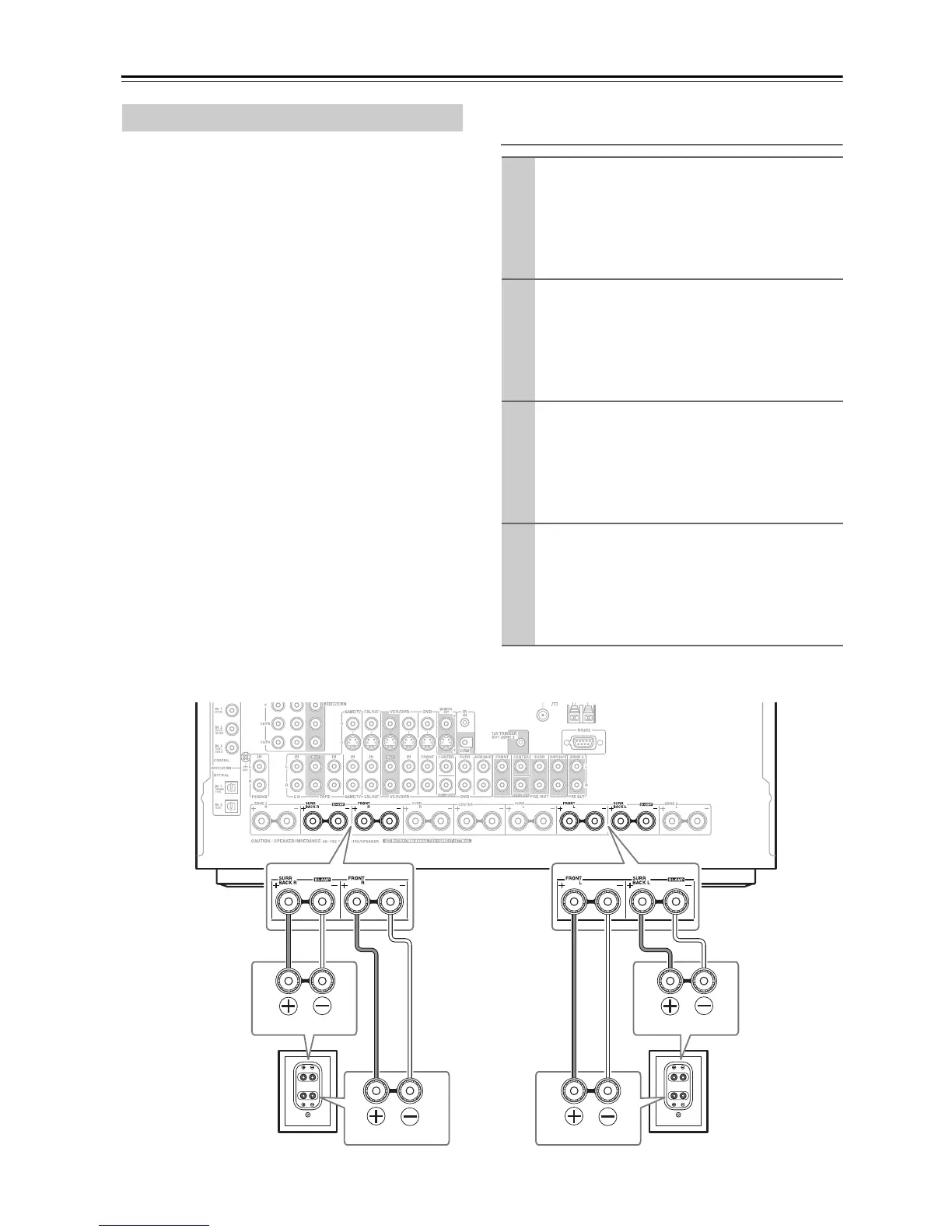 Les bornes d’enceinte FRONT L/R et SURR BACK L/R