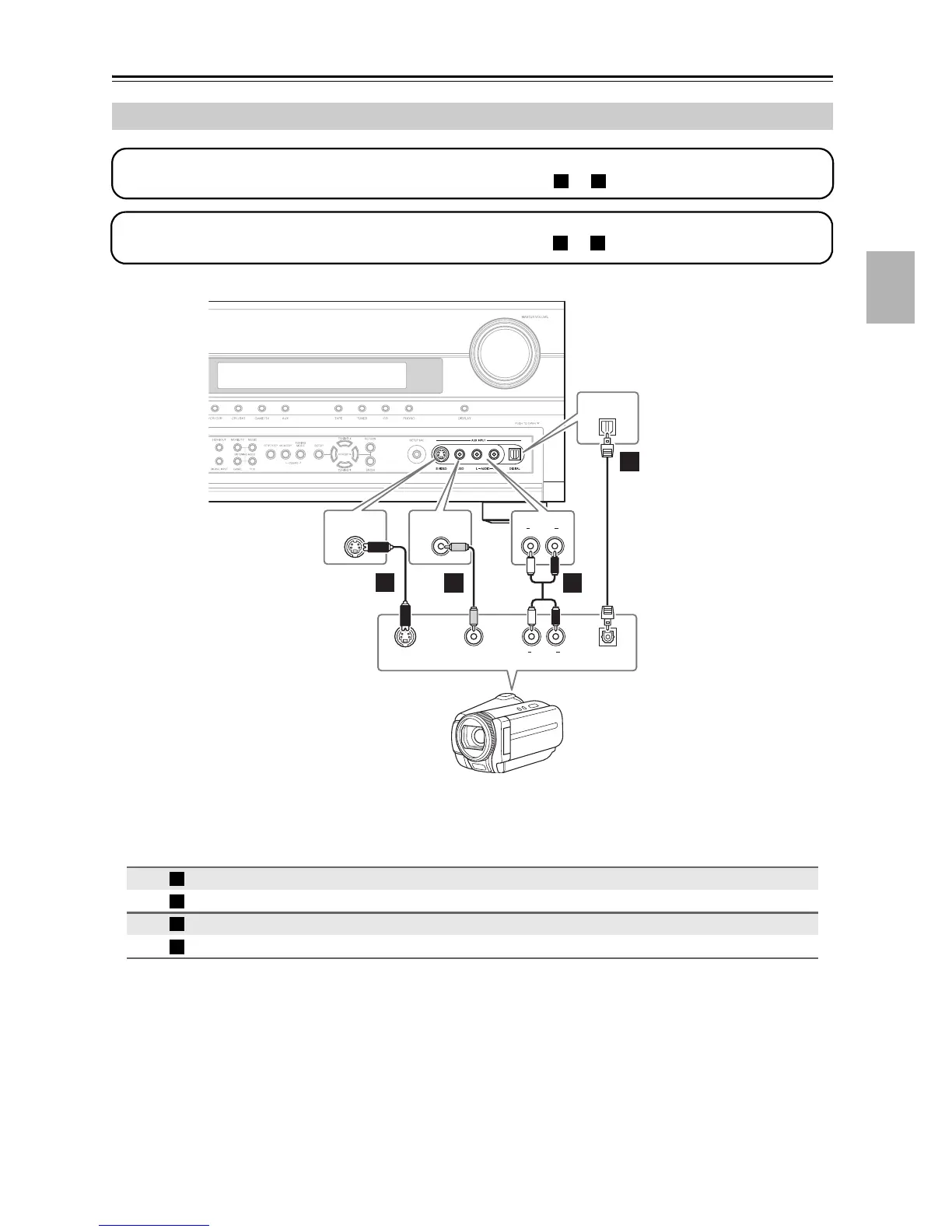 Sélectionnez un branchement vidéo correspondant à votre caméscope ( ou ), puis effectuez le branchement.