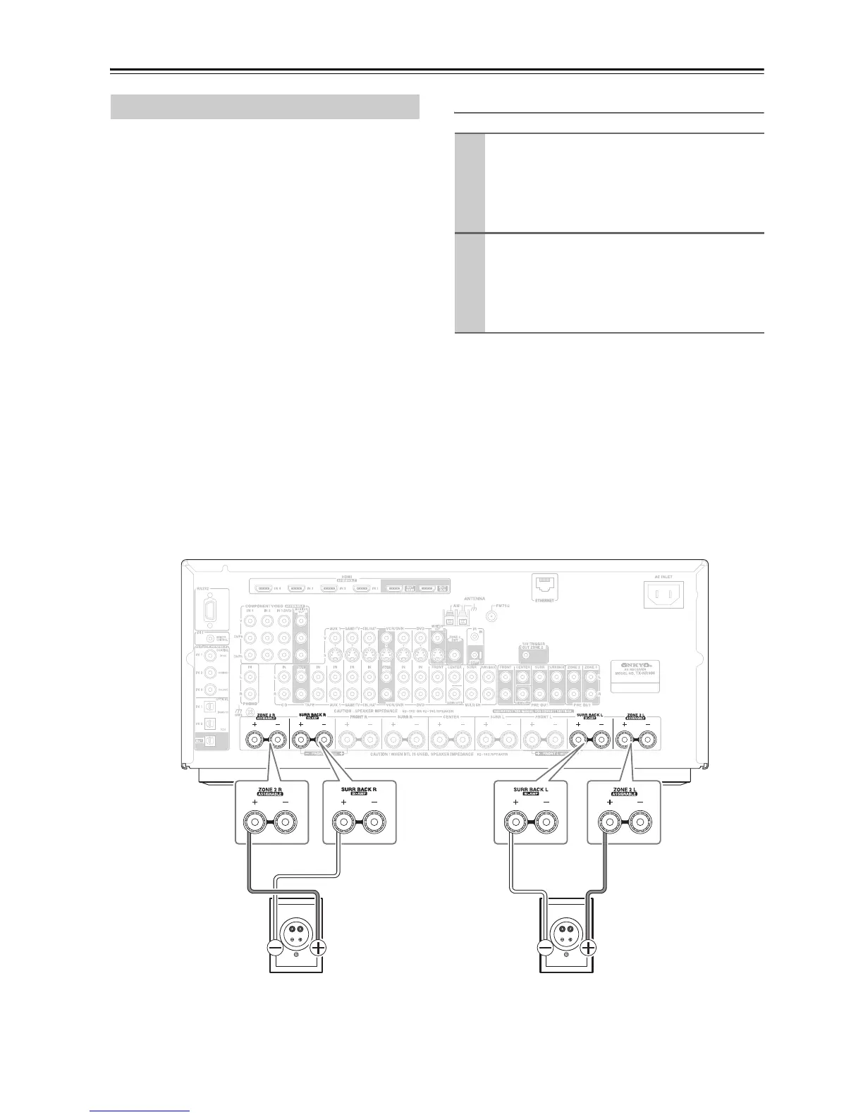 • For bridging, the positive (+) ZONE 2 L/R and SURR