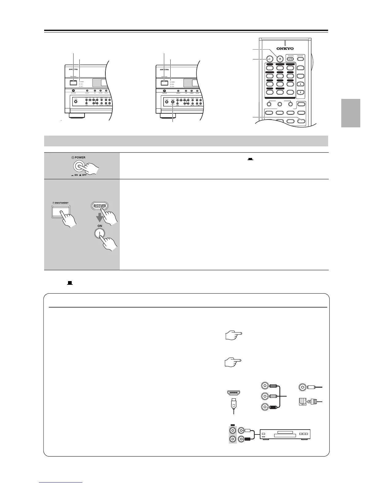 The AV receiver comes on, the display lights up, and the STANDBY indicator goes off.