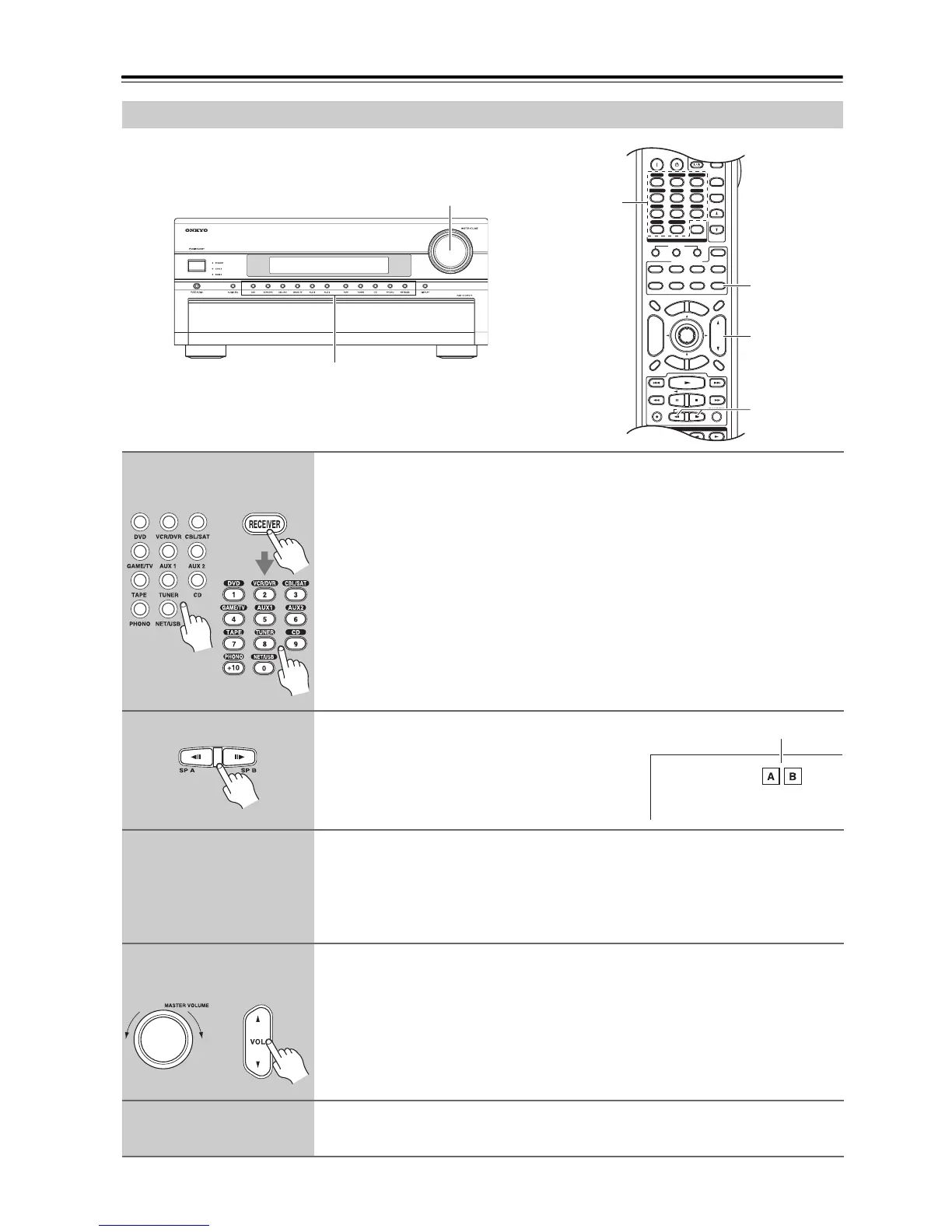 To adjust the volume, use the MASTER VOLUME control, or the remote