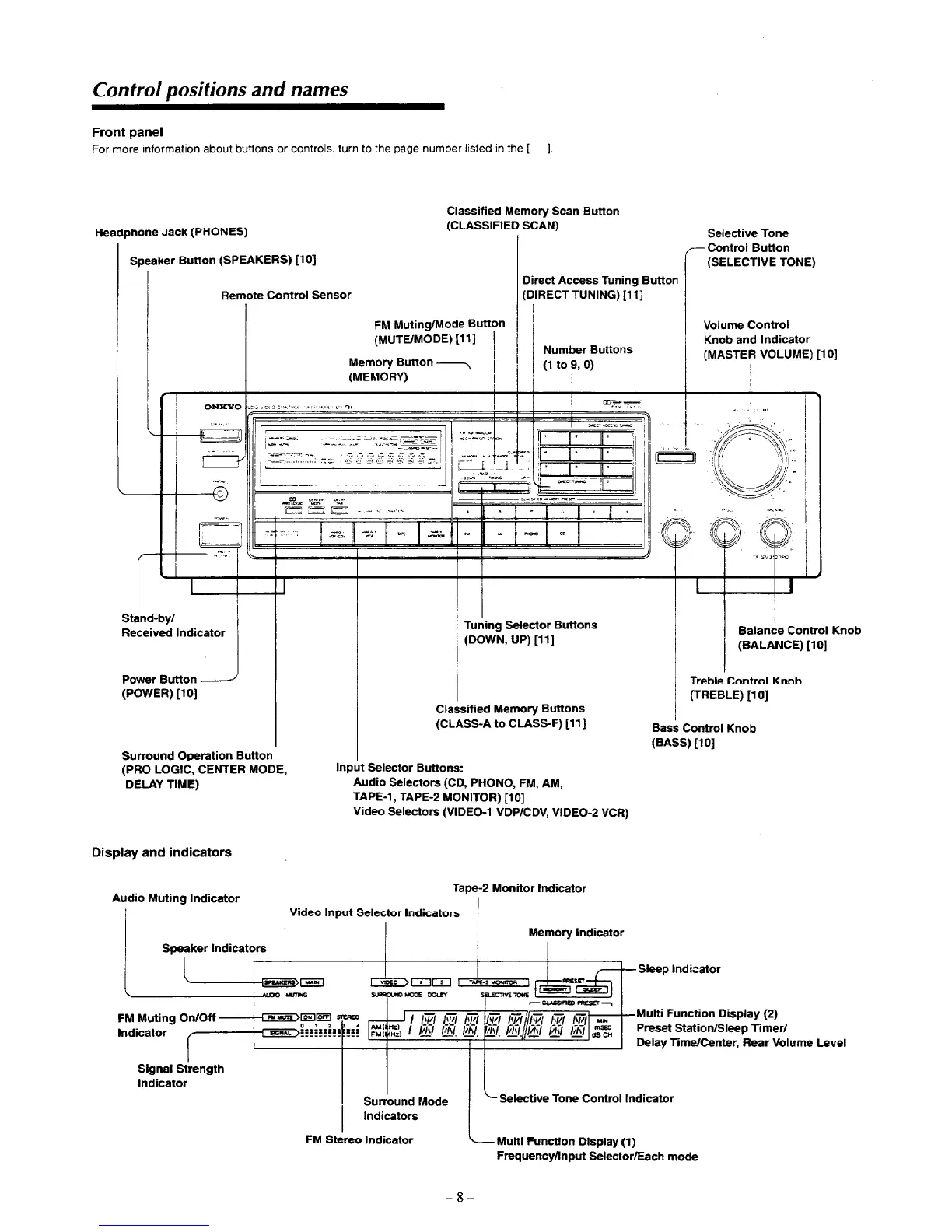 Onkyo TX-SV313 - Front Panel Controls and Indicators; Front Panel Controls Explained; Front Panel Indicator Meanings