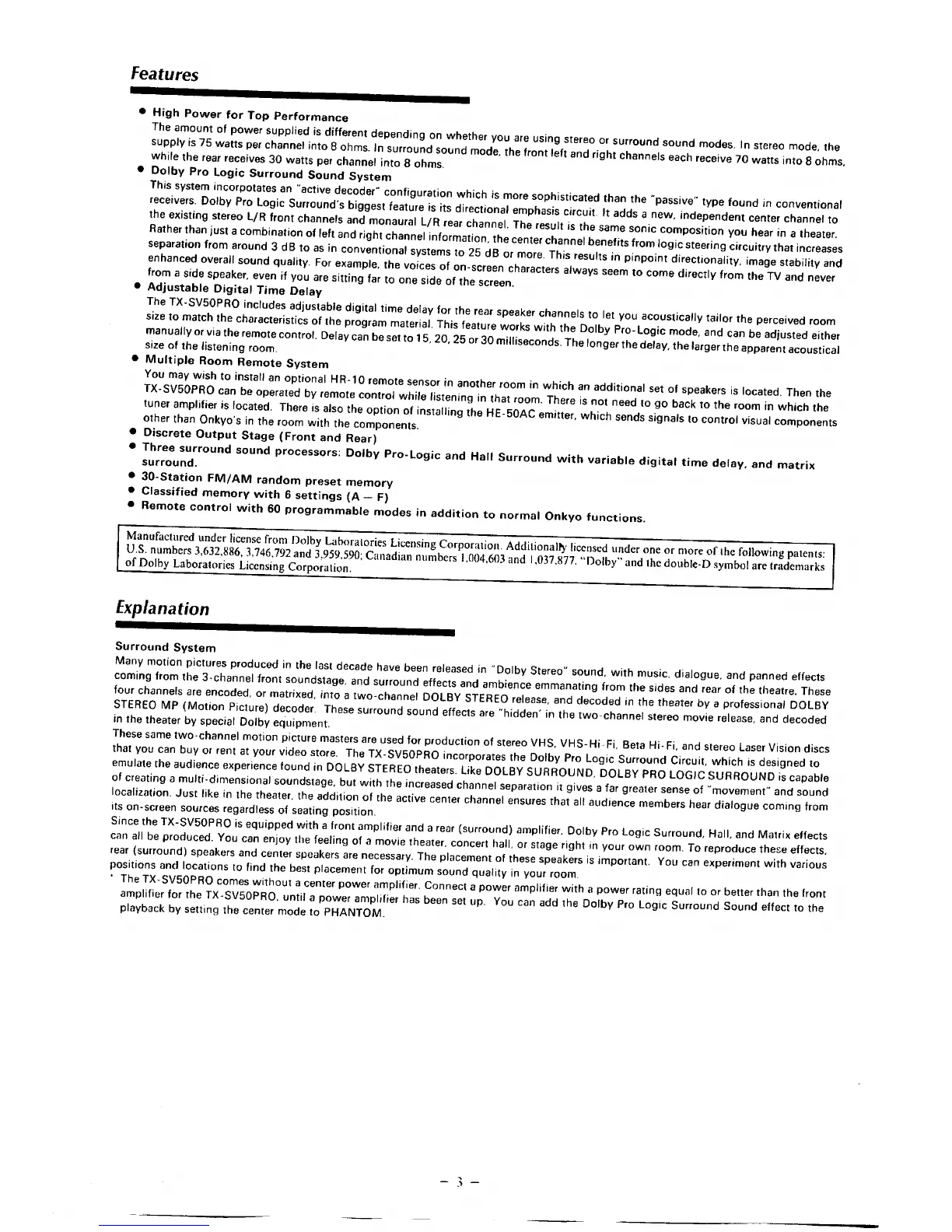 Onkyo TX-SV50PRO - Product Features; Surround Sound System Features