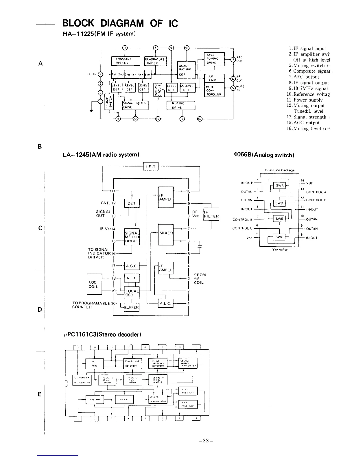 Onkyo TX28 - IC Block Diagrams; HA-11225 (FM IF System); LA-1245 (AM Radio System); µPC1161 C3 (Stereo Decoder)
