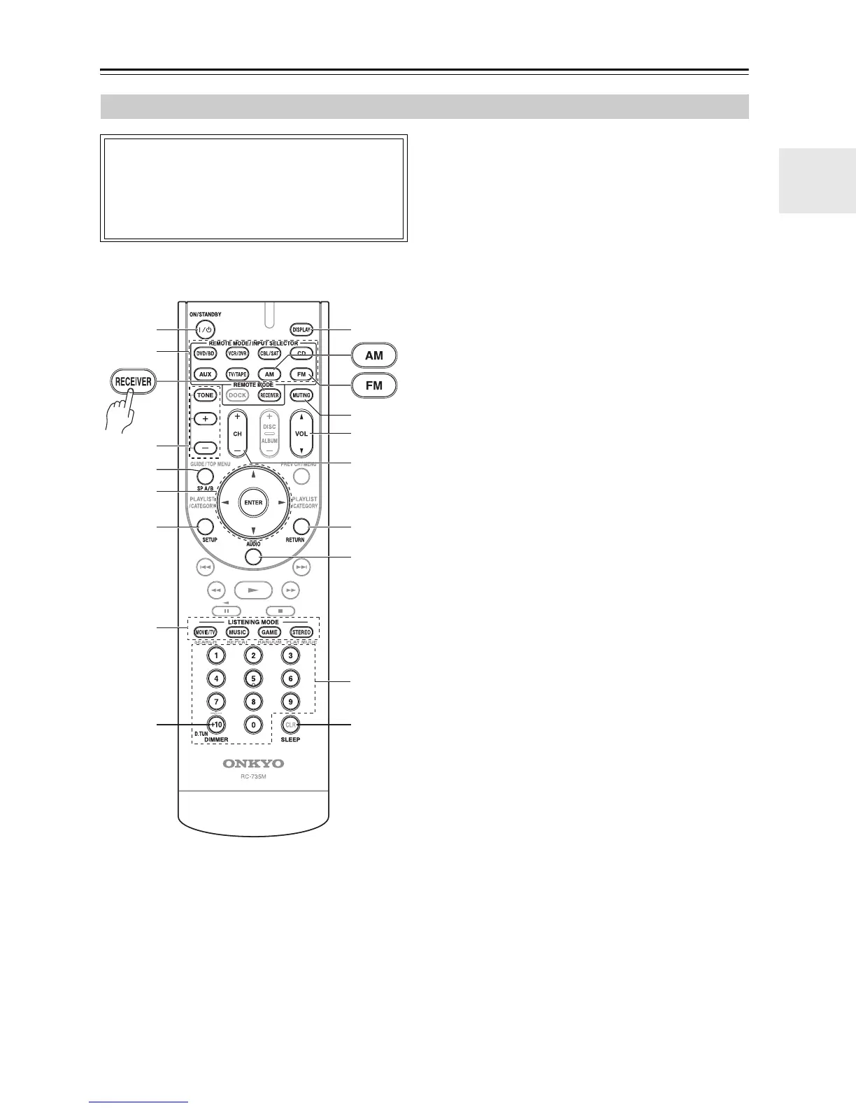 To control the AV receiver’s tuner, press the [AM], [FM]