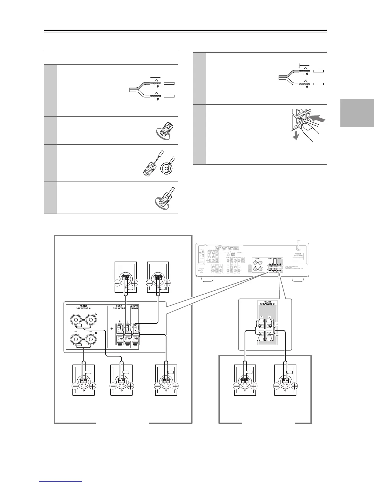 The following illustration shows which speaker should be connected to each pair of terminals.