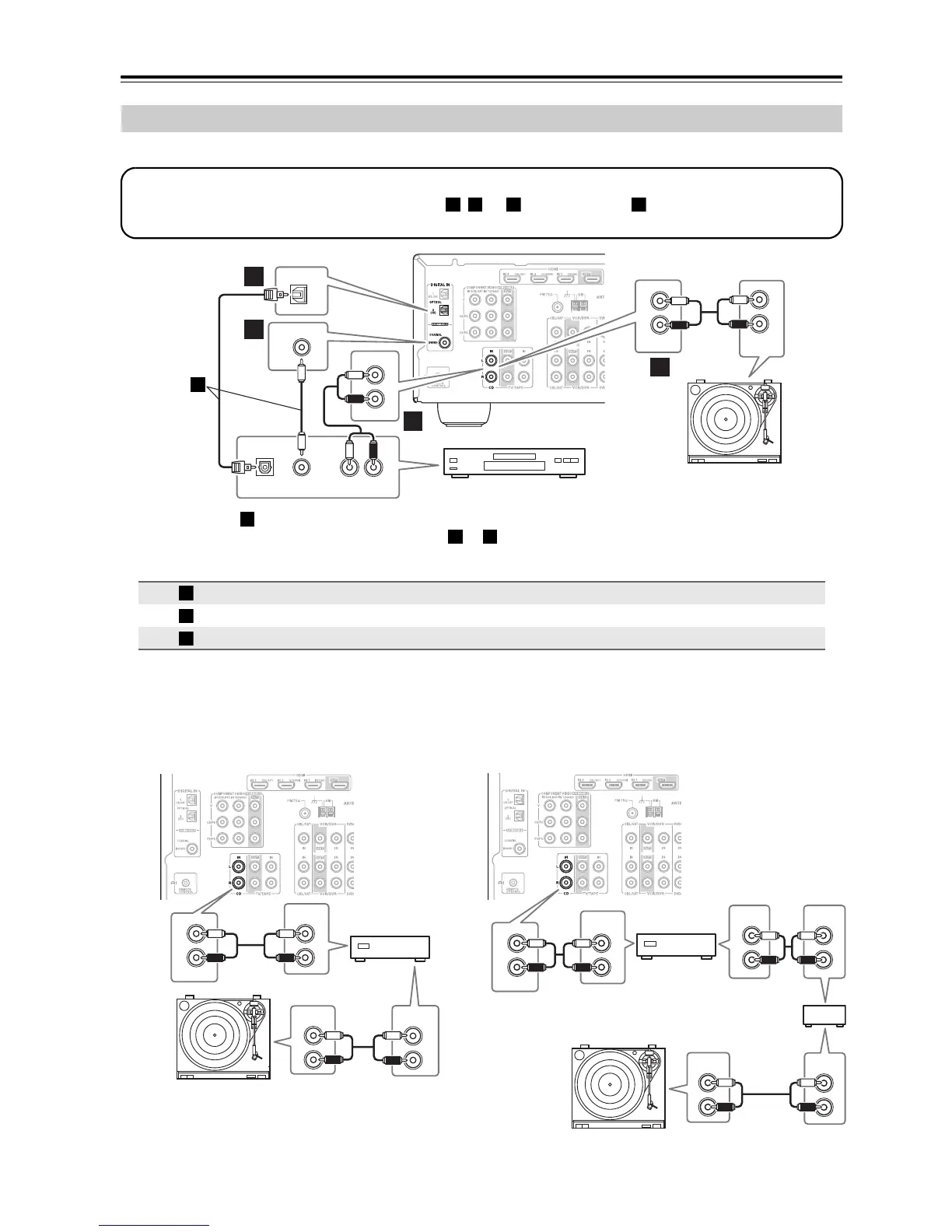 Choose a connection that matches your CD player ( , , or ). Use connection for a turntable with a built-in