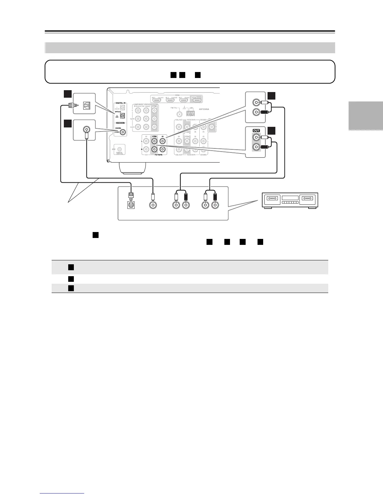 Connection AV receiver Signal flow Cassette, CDR, MD, or DAT recorder