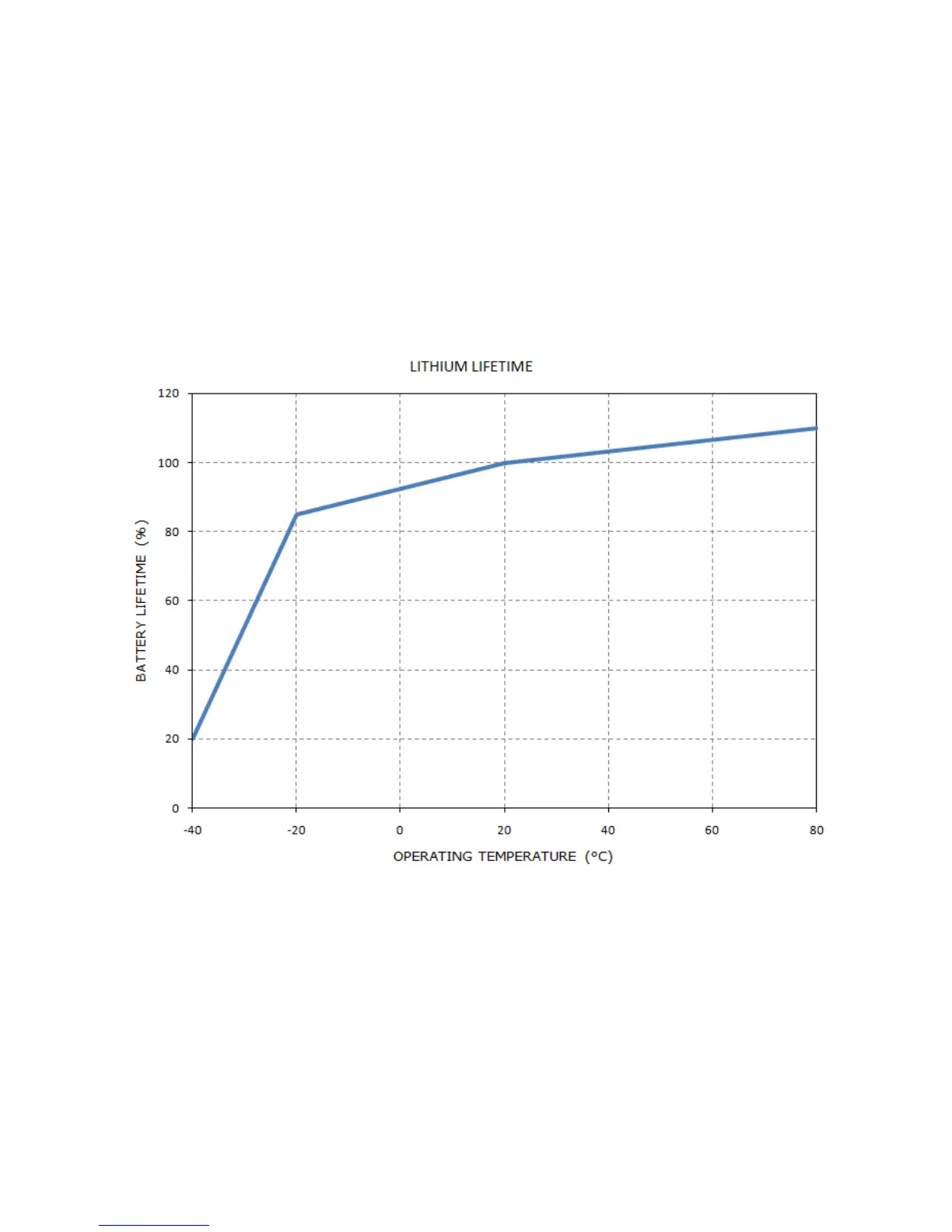 Typically colder temperatures will shorten the stated lifetime as shown by the figure below.