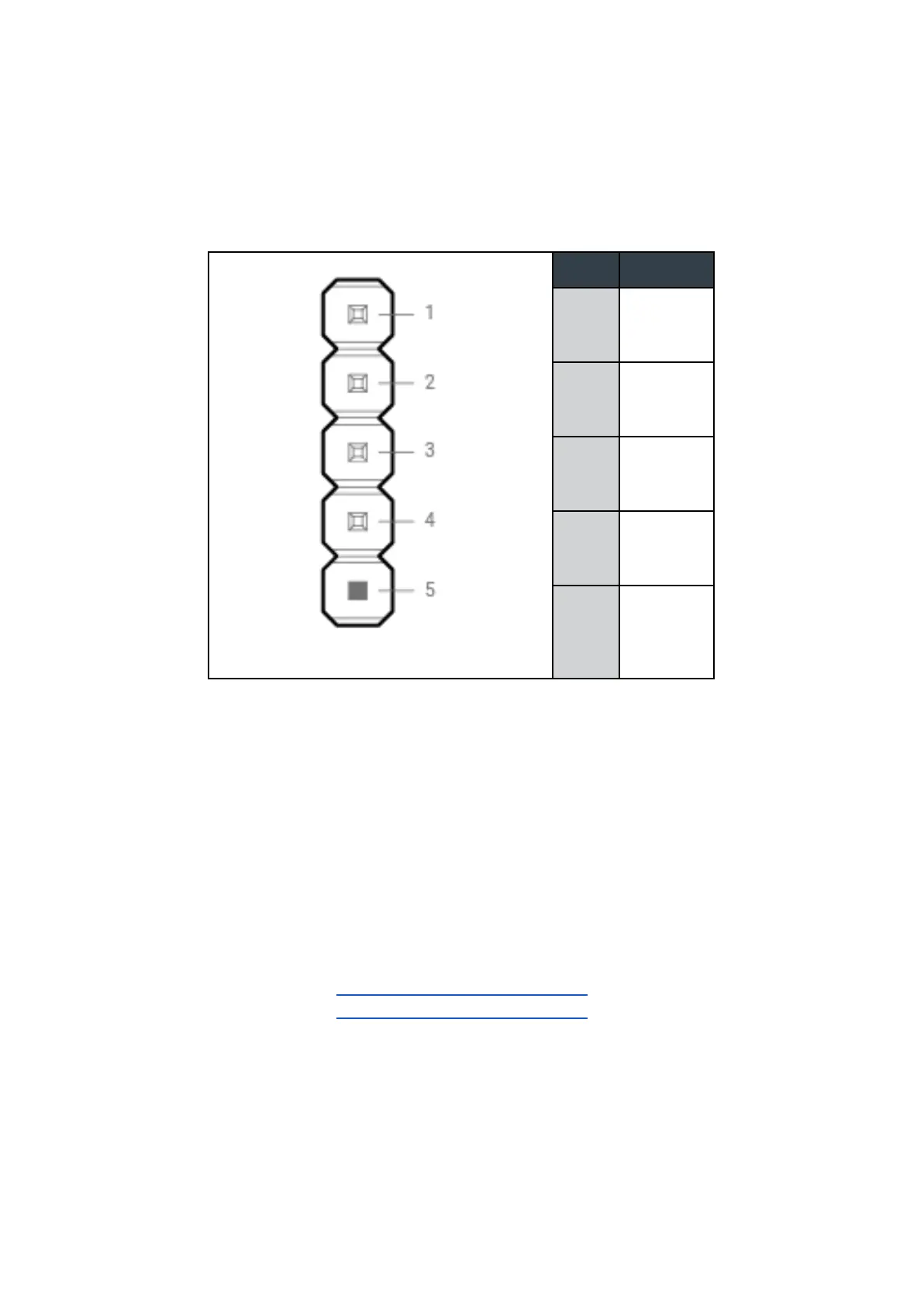 pitch male pin connector with the pin configuration in the chart below. The 5V power pin (Pin 1) can