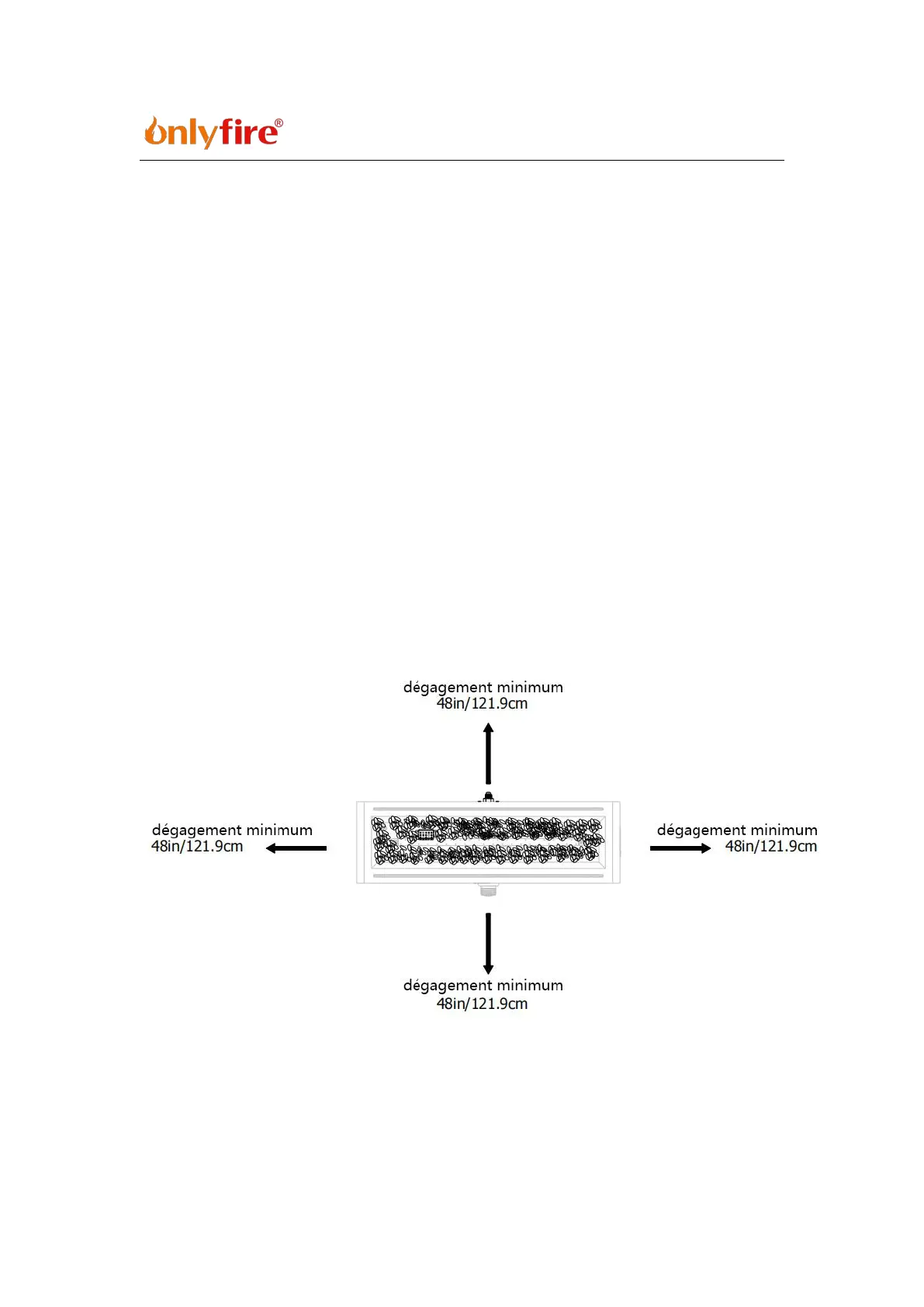 Les matériaux combustibles ne doivent pas se trouver à moins de 72 pouces du haut de l'unité,