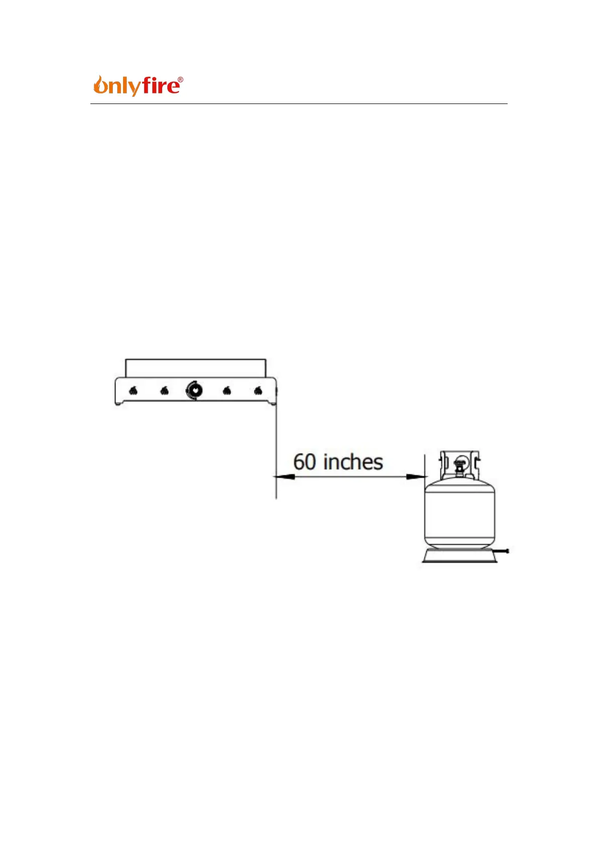 La distance minimale entre le foyer et la bouteille de gaz propane doit être supérieure à 60
