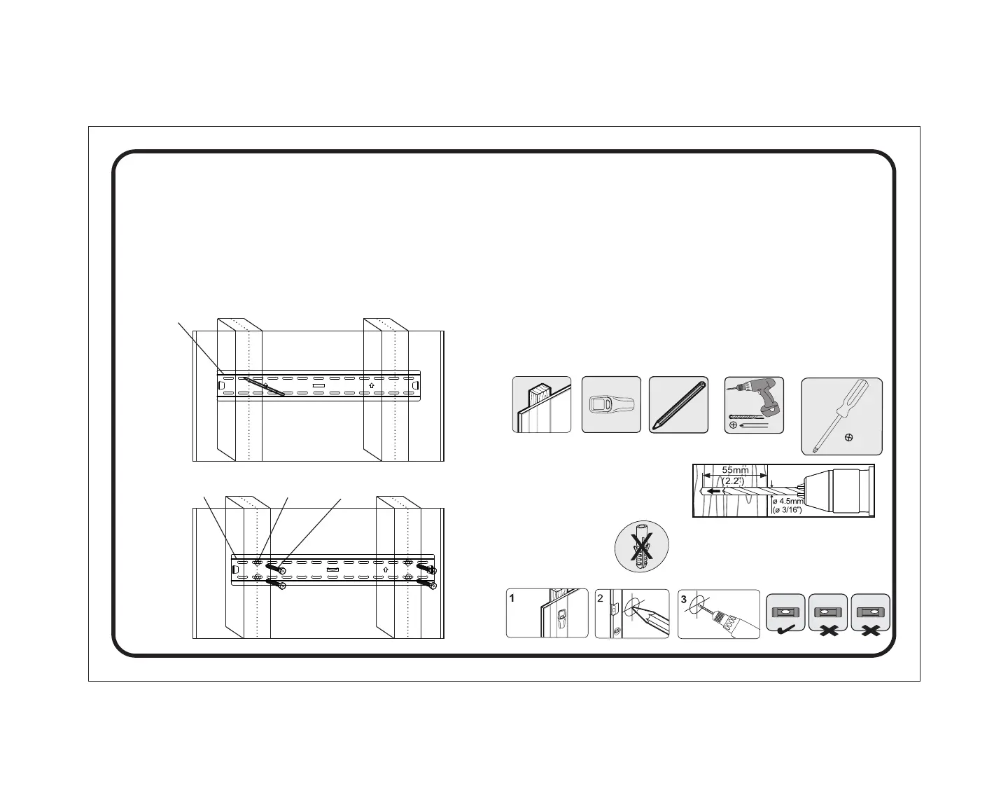 3/16" (4.5mm) drill bit to a depth of 2.2" (55mm).