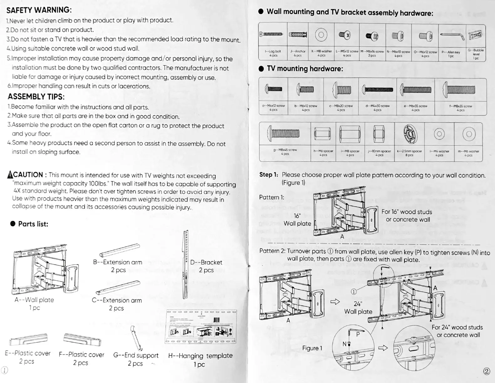 Onn 100010108 - Safety, Parts, and Hardware; Safety Warnings; Assembly Tips; Parts List and Hardware
