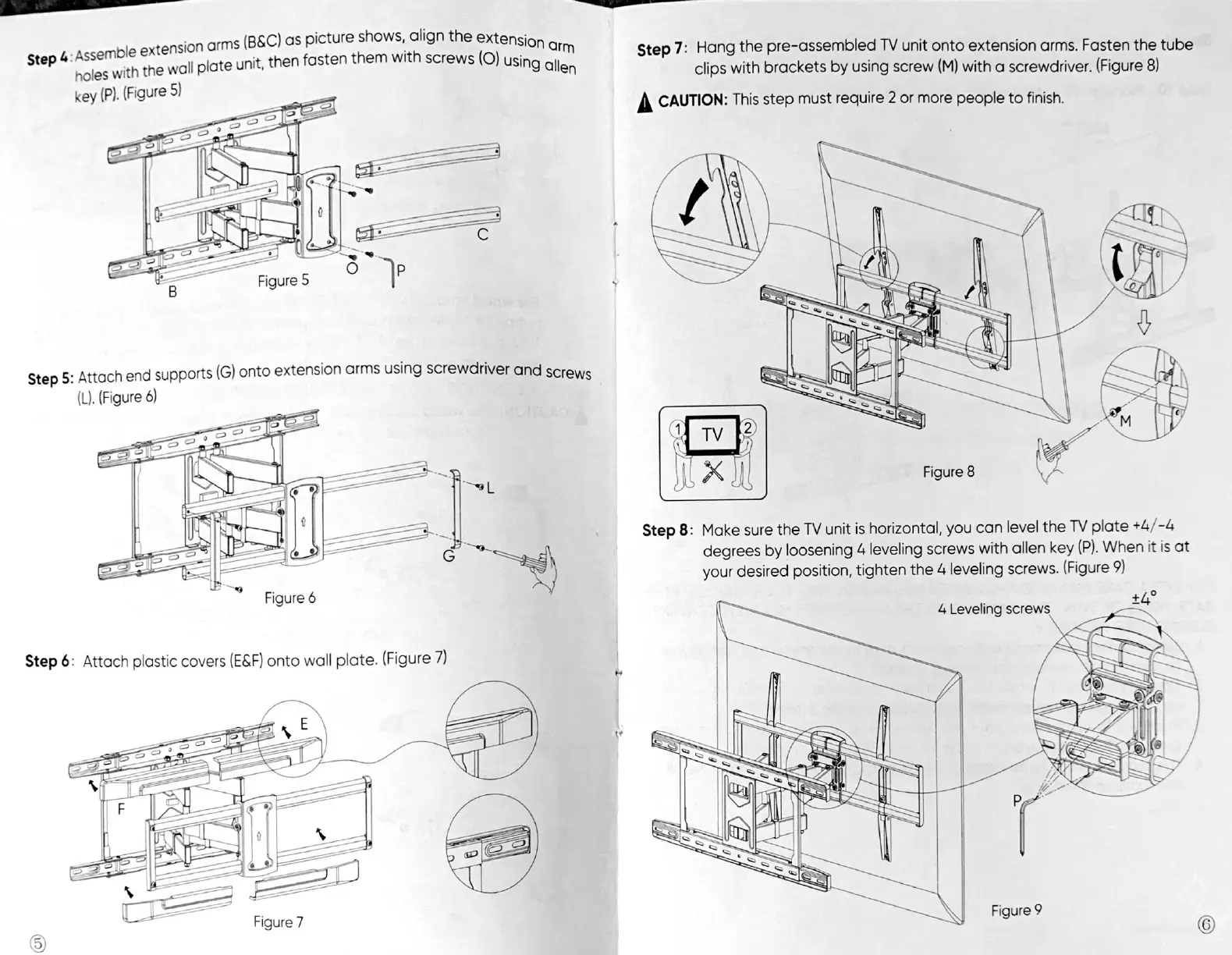 Onn 100010108 - Step 4: Assemble Extension Arms; Step 5: Attach End Supports; Step 6: Attach Plastic Covers; Step 7: Hang TV Unit