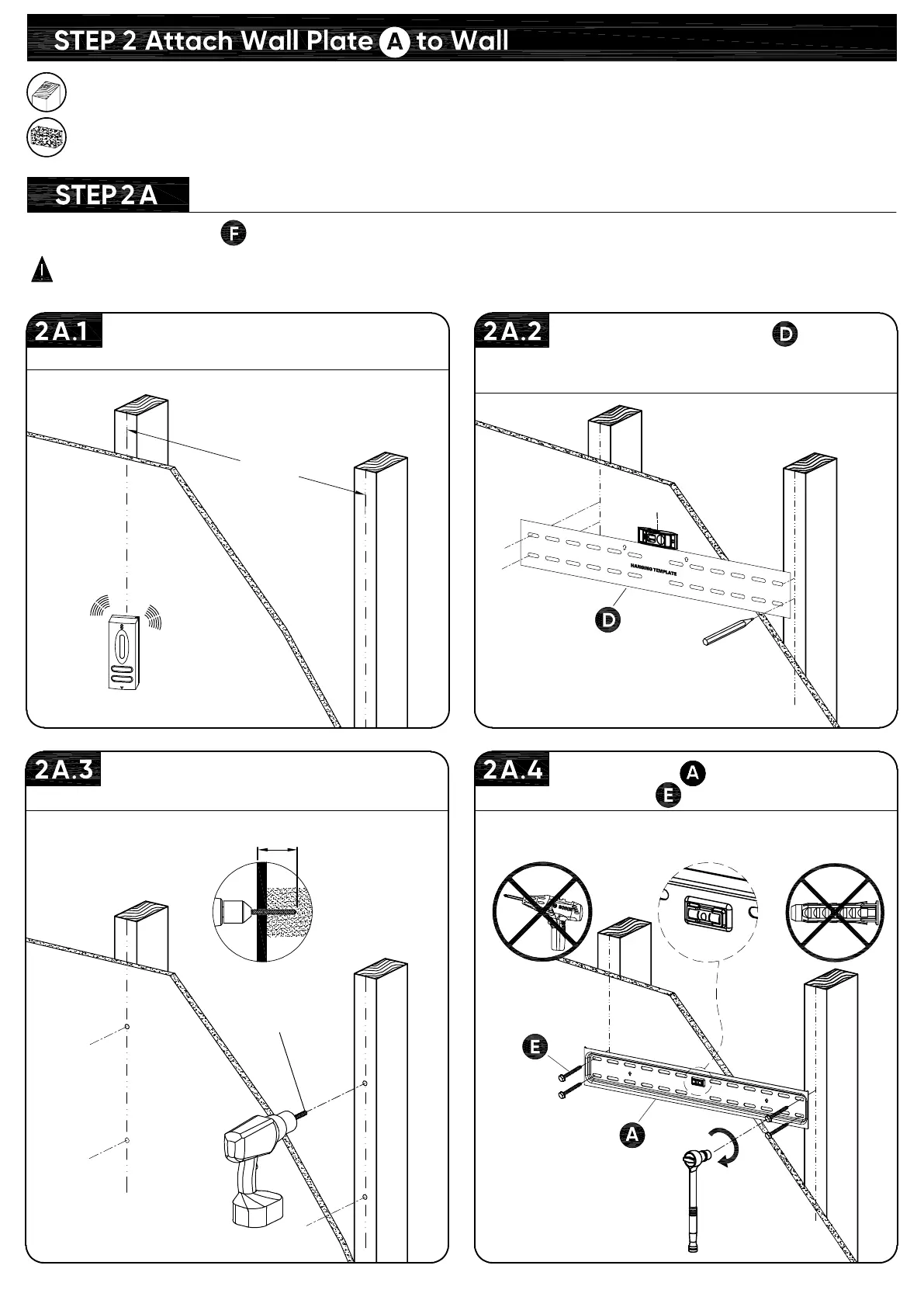 For wood stud installation, follow STEP 2A
