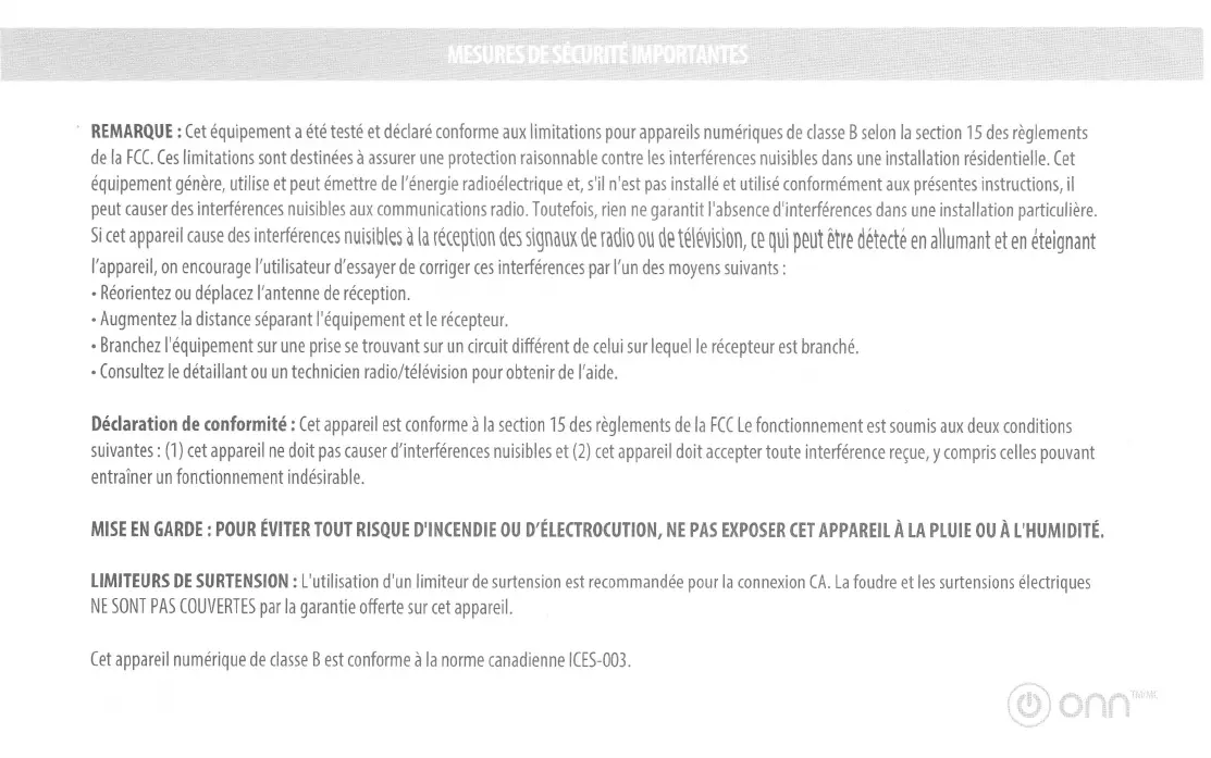 nuisibles a la reception des signaux de radio ou de television, ce qui peut etre detecte en allumant et en