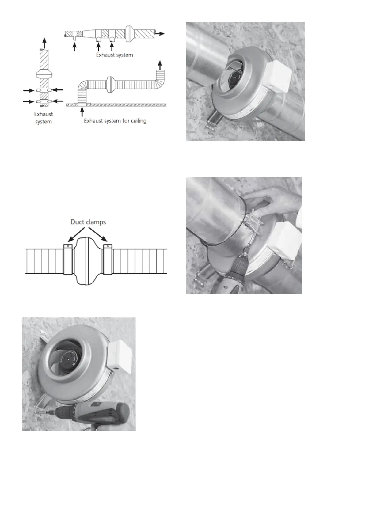 Installation with duct clamps for duct fan CK.