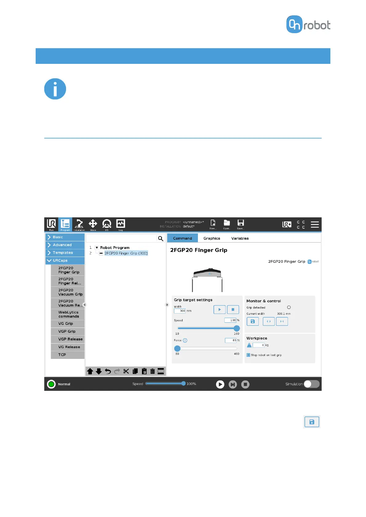 URCap commands provide an easy way to program an application.