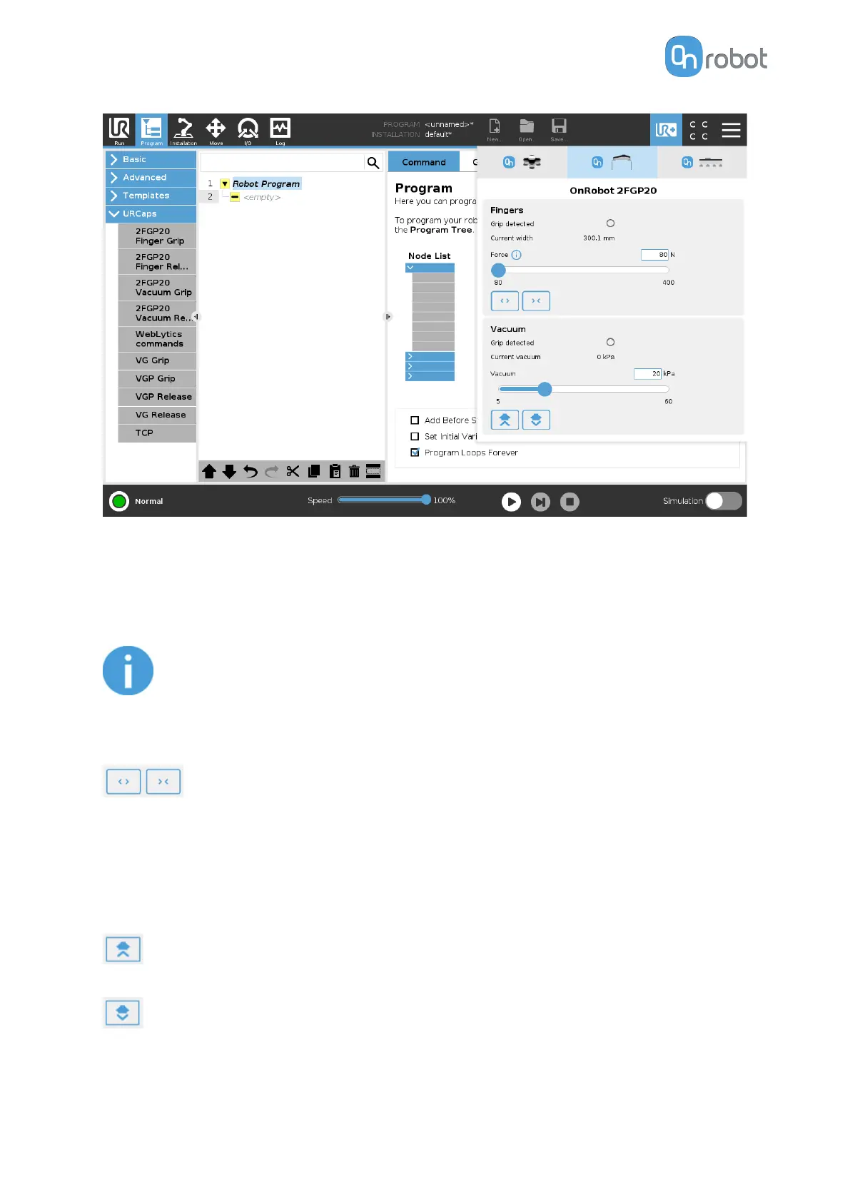 (Grip button): when pressed, the pump will start to generate vacuum at the selected