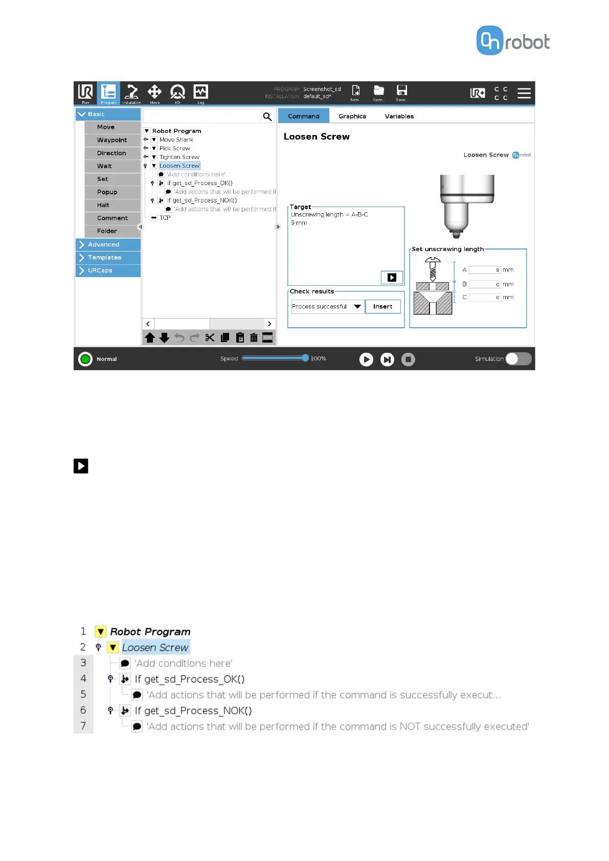 statement in the robot program based on the selected option as shown in the screenshot