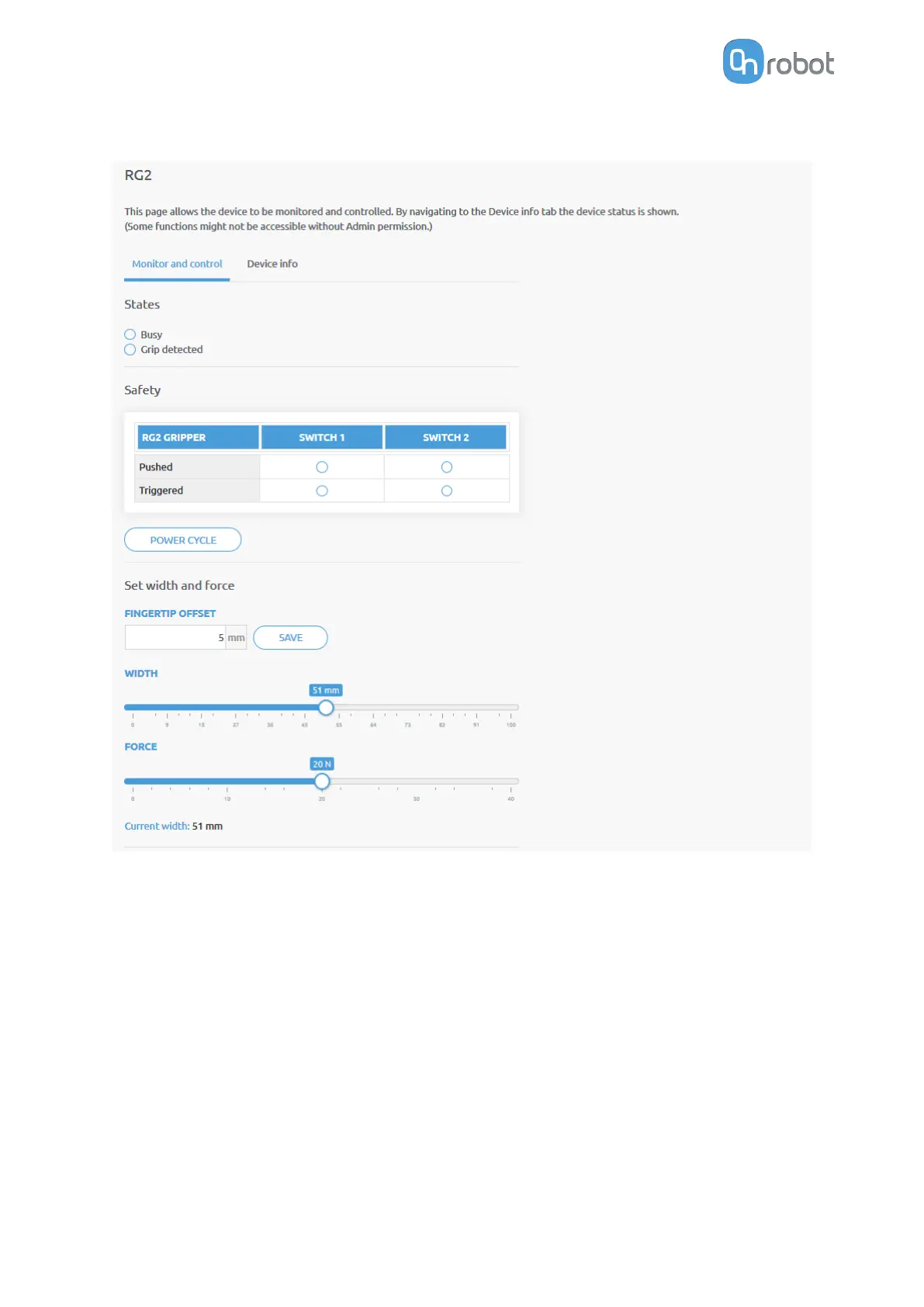 Fingertip oset must be set according to the current fingertips attached to the gripper. Oset