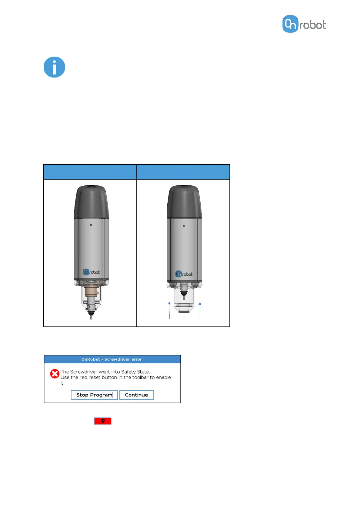 This safety feature is activated if the Screw-bit System detects a force above 40N during