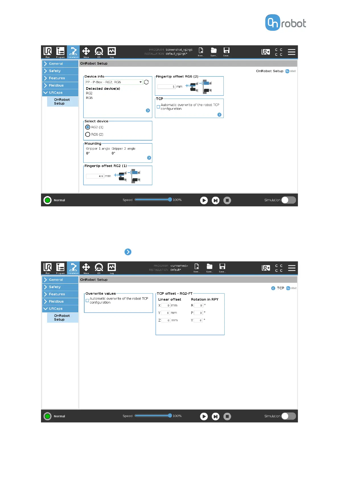 by pressing the Automatic overwrite of the robot TCP configuration checkbox.