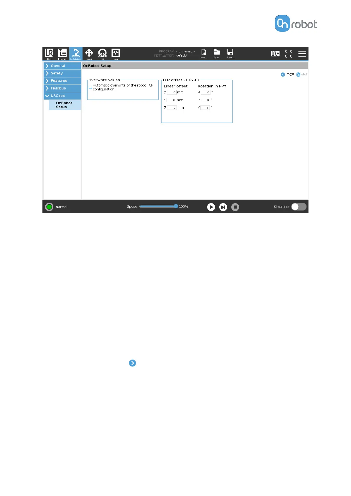 Automatic overwrite of the robot TCP configuration: when checked, the UR's TCP