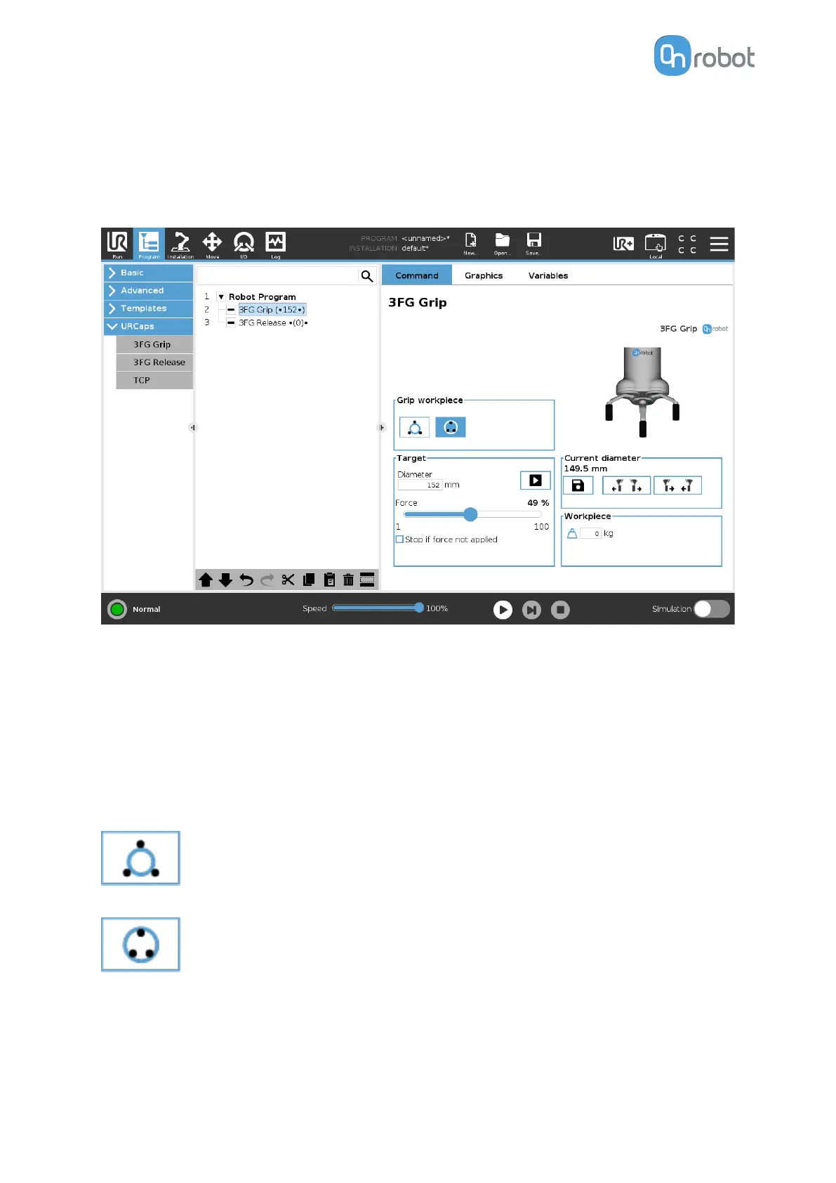 When the 3FG Grip command is executed, the gripper will try to reach the specified target